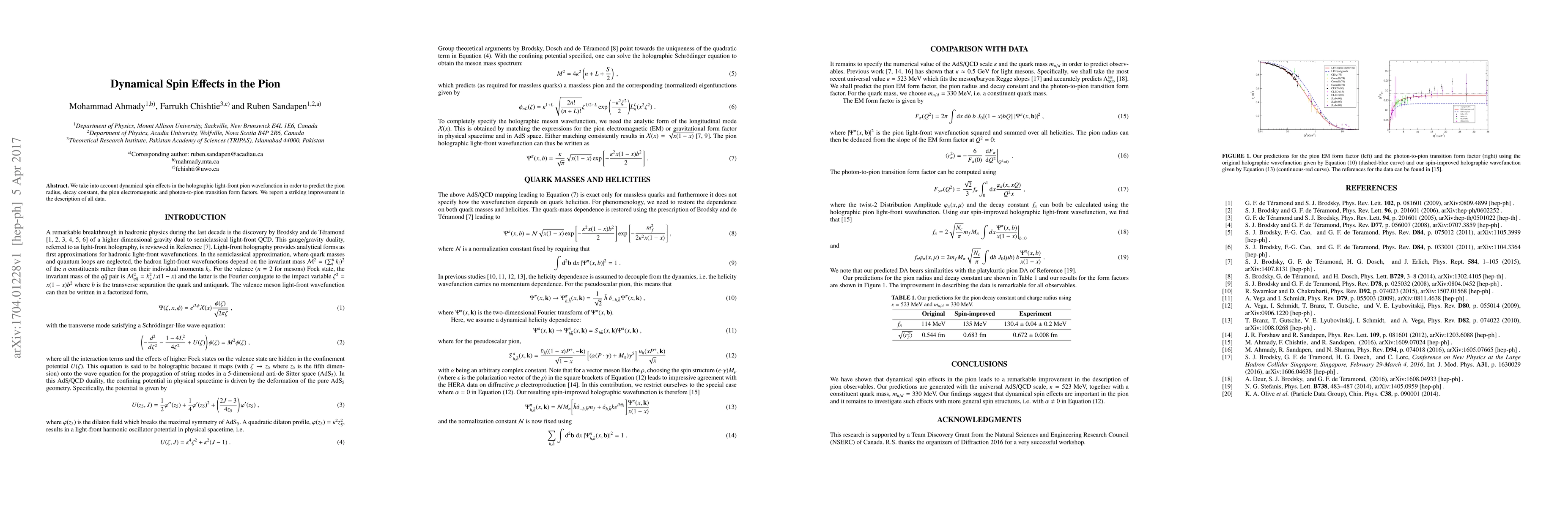 We take into account dynamical spin effects in the holographic light-front pion wavefunction in order to predict the pion radius, decay constant, the pion electromagnetic and photon-to-pion transition form factors. We report a striking improvement in the description of all data.