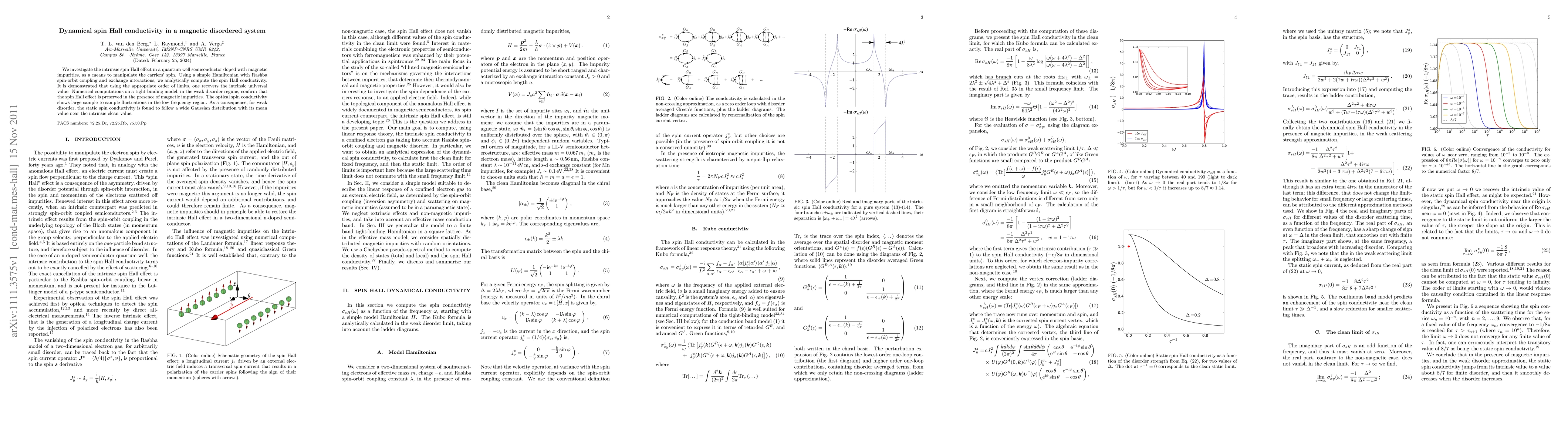 We investigate the intrinsic spin Hall effect in a quantum well semiconductor doped with magnetic impurities, as a means to manipulate the carriers' spin. Using a simple Hamiltonian with Rashba spin-orbit coupling and exchange interactions, we analytically compute the spin Hall conductivity. It is demonstrated that using the appropriate order of limits, one recovers the intrinsic universal value. Numerical computations on a tight-binding model, in the weak disorder regime, confirm that the spin Hall effect is preserved in the presence of magnetic impurities. The optical spin conductivity shows large sample to sample fluctuations in the low frequency region. As a consequence, for weak disorder, the static spin conductivity is found to follow a wide Gaussian distribution with its mean value near the intrinsic clean value.