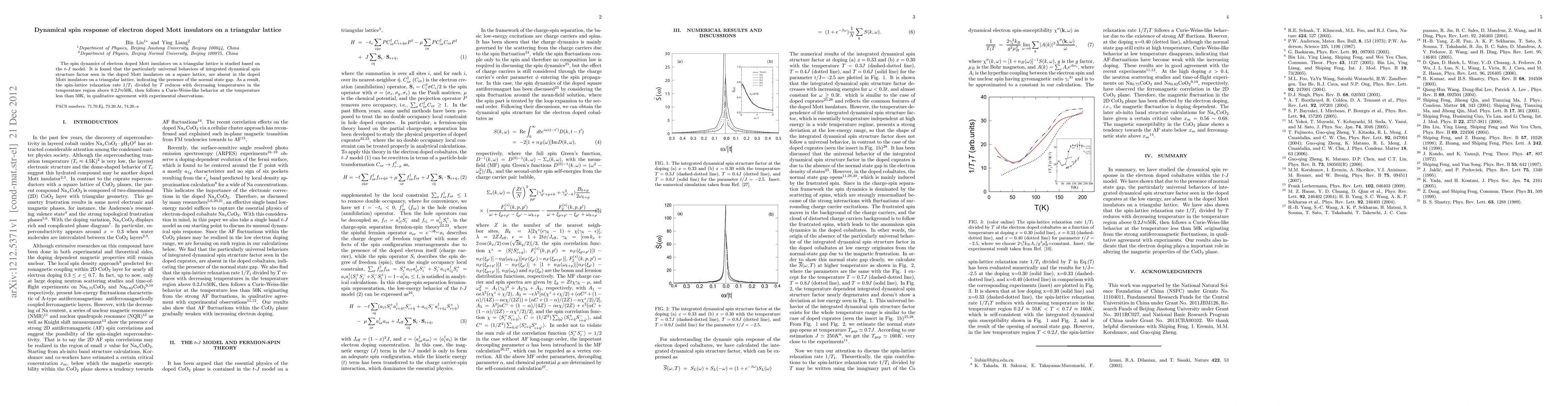 This paper studies the spin dynamics of electron doped Mott insulators on a triangular lattice using the $t-J$ model, finding unique spin behaviors compared to those on a square lattice. The research indicates the presence of a normal state gap, leading to a Curie-Weiss-like temperature dependence of the spin-lattice relaxation rate below 50K, consistent with experimental data.