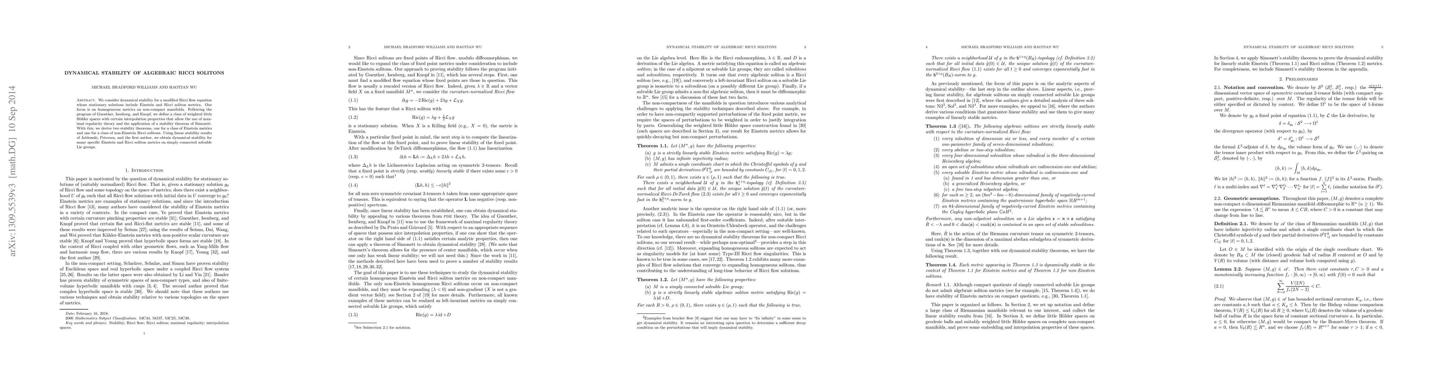 This paper examines the dynamical stability of algebraic Ricci solitons under a modified Ricci flow, focusing on homogeneous metrics on non-compact manifolds. It employs maximal regularity theory and a stability theorem to derive two stability theorems for Einstein metrics and non-Einstein Ricci solitons, confirming dynamical stability for specific metrics on solvable Lie groups.