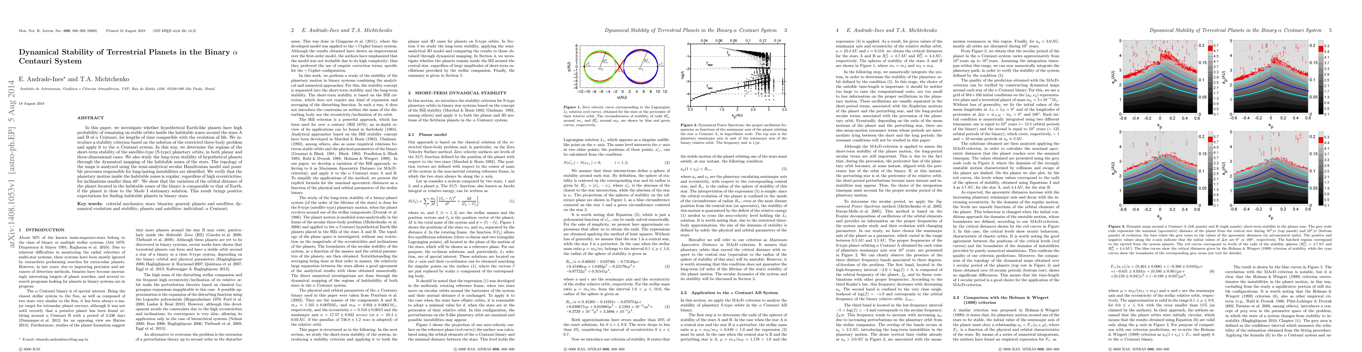 This paper examines the dynamical stability of Earth-like planets in the α Centauri binary star system, finding that stable orbits within habitable zones are feasible for long periods, suggesting potential for habitable planets in such systems. The study uses a stability criterion based on the restricted three-body problem and identifies regions of short-term stability, concluding that the orbital distance variation of habitable zone planets is comparable to Earth's.