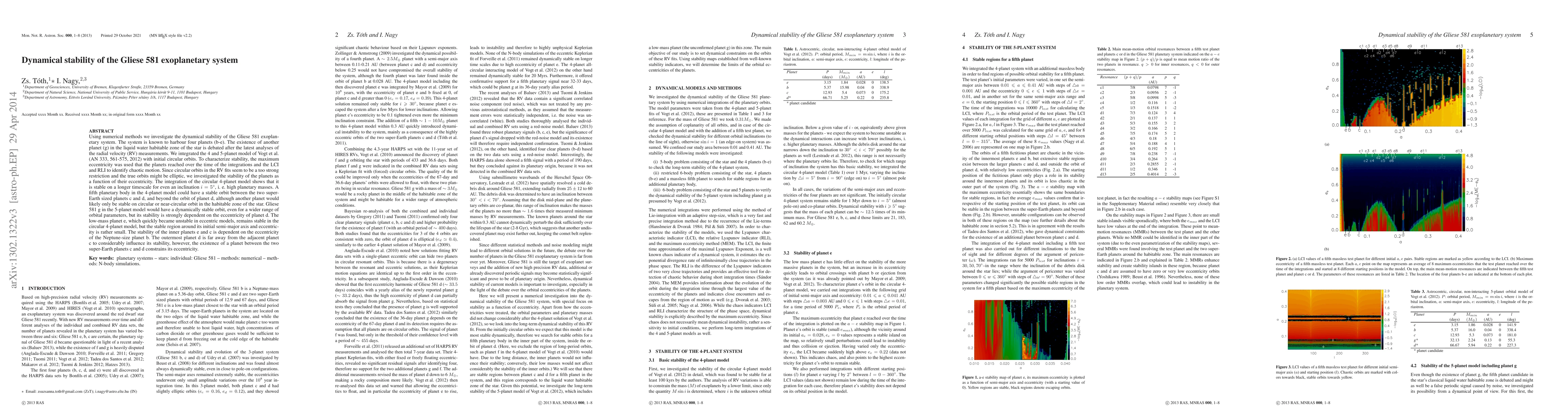 This research investigates the dynamical stability of the Gliese 581 exoplanetary system using numerical methods, finding that the 4-planet model is stable even with moderate inclinations. The addition of a fifth planet, particularly in the habitable zone, shows stability but is highly dependent on the eccentricity of neighboring planets, especially planet d.