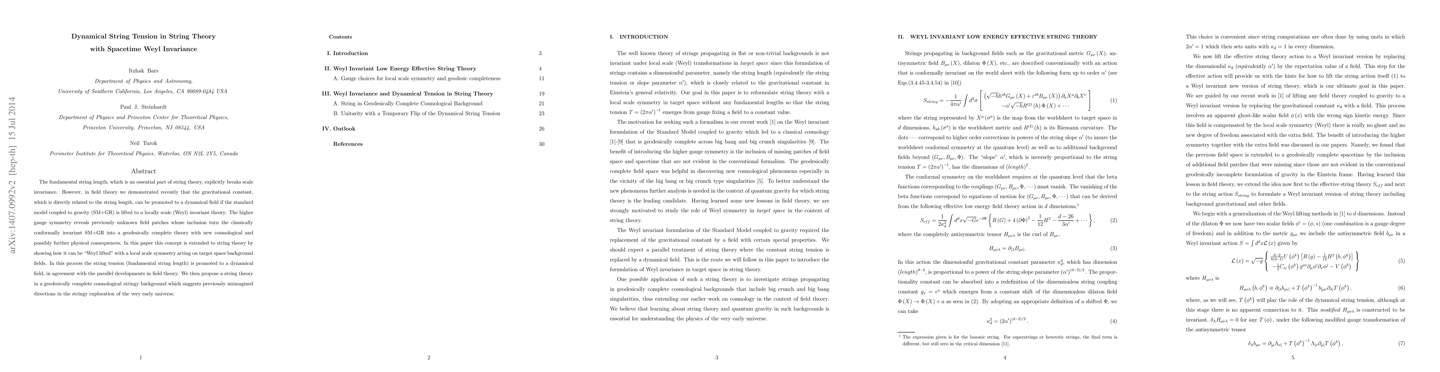 The fundamental string length, which is an essential part of string theory, explicitly breaks scale invariance. However, in field theory we demonstrated recently that the gravitational constant, which is directly related to the string length, can be promoted to a dynamical field if the standard model coupled to gravity (SM+GR) is lifted to a locally scale (Weyl) invariant theory. The higher gauge symmetry reveals previously unknown field patches whose inclusion turn the classically conformally invariant SM+GR into a geodesically complete theory with new cosmological and possibly further physical consequences. In this paper this concept is extended to string theory by showing how it can be Weyl lifted with a local scale symmetry acting on target space background fields. In this process the string tension (fundamental string length) is promoted to a dynamical field, in agreement with the parallel developments in field theory. We then propose a string theory in a geodesically complete cosmological stringy background which suggests previously unimagined directions in the stringy exploration of the very early universe.