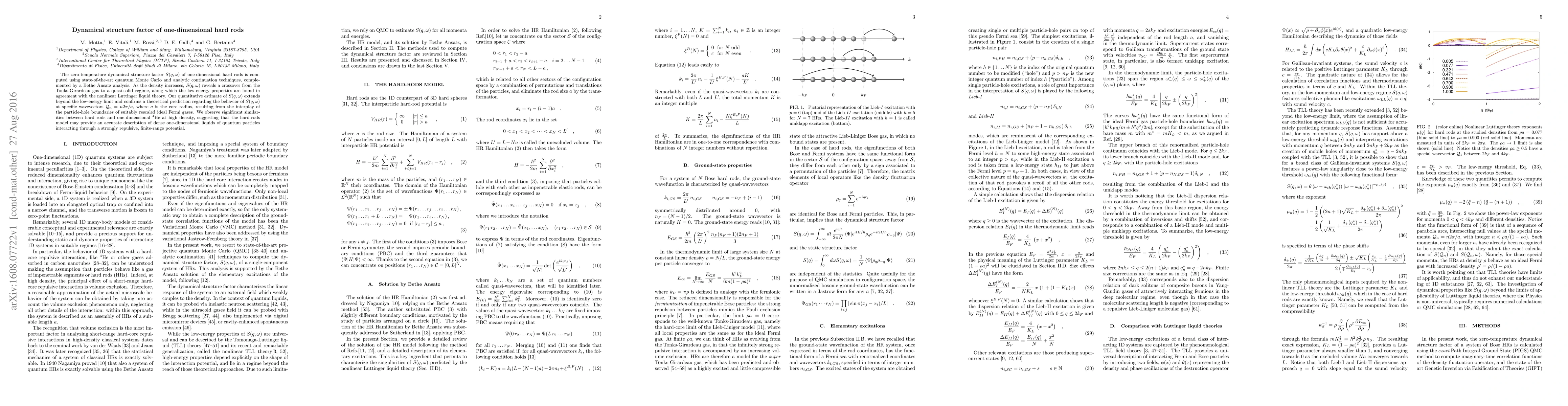This paper computes the dynamical structure factor $S(q,\omega)$ for one-dimensional hard rods using quantum Monte Carlo and analytic techniques, revealing a crossover from Tonks-Girardeau gas to a quasi-solid regime. The findings align with nonlinear Luttinger liquid theory and suggest the hard-rods model accurately describes dense one-dimensional quantum liquids.