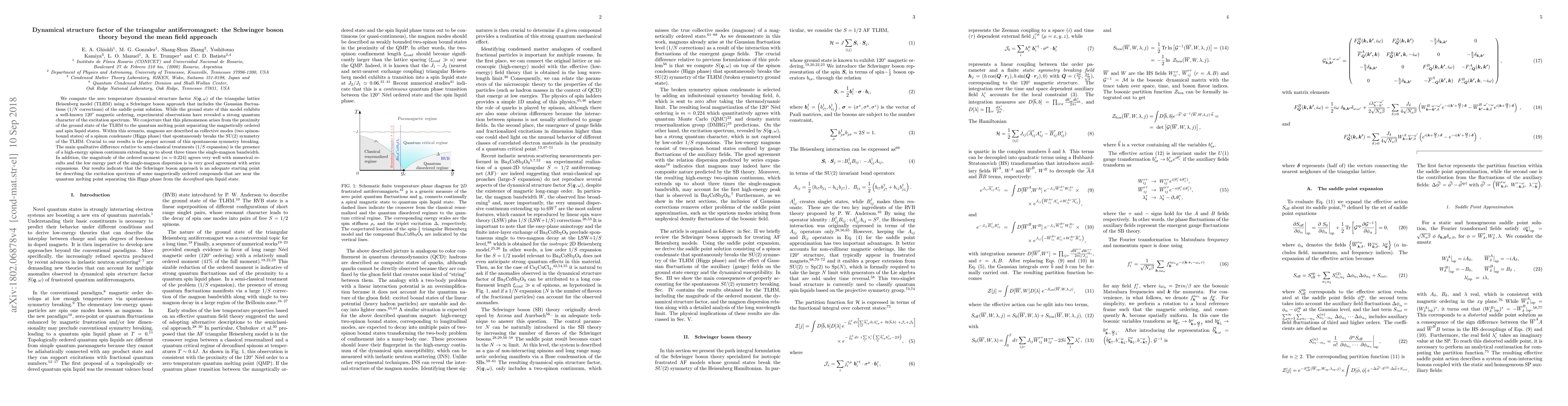 The study uses a Schwinger boson approach to calculate the dynamical structure factor of the triangular antiferromagnet, revealing a high-energy spinon continuum and agreeing with numerical results, indicating that this method is suitable for describing magnetically ordered compounds near quantum melting point.