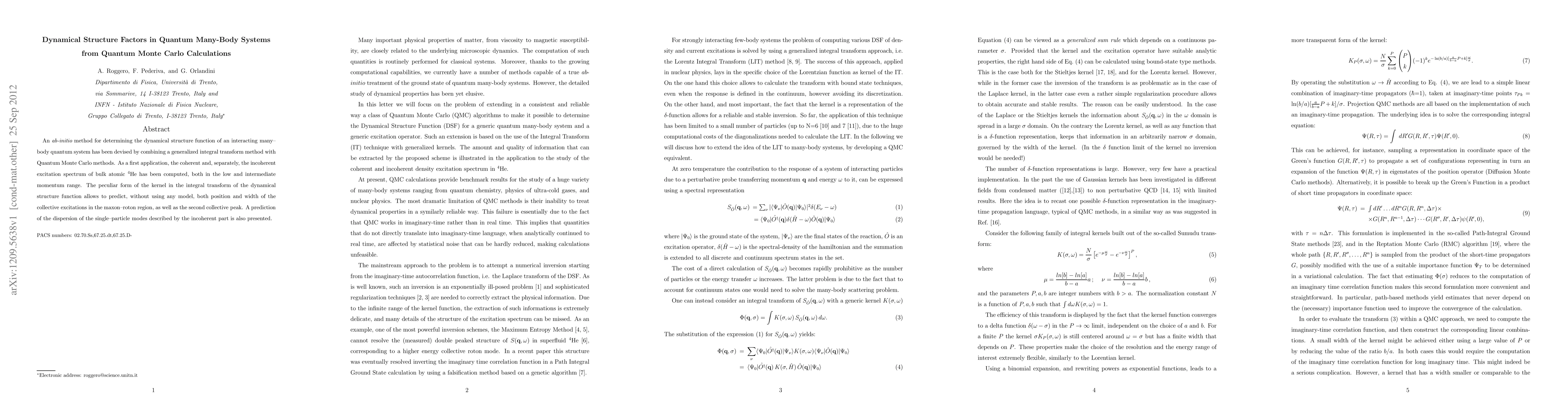 Researchers developed a new method to calculate the dynamical structure function of many-body quantum systems using Quantum Monte Carlo methods, predicting collective excitations in 4He with accuracy without relying on models.