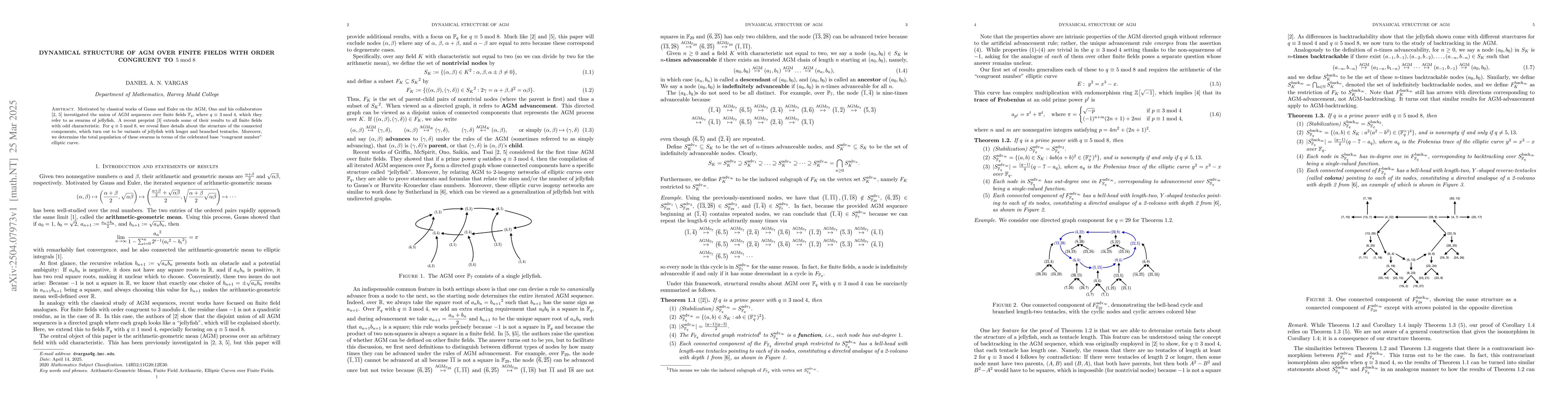 Researchers studied the structure of arithmetic-geometric mean (AGM) sequences over finite fields with a characteristic congruent to 5 mod 8. They found that these swarms of AGM sequences form variants of jellyfish with longer and branched tentacles, connected by a 'congruent number' elliptic curve.