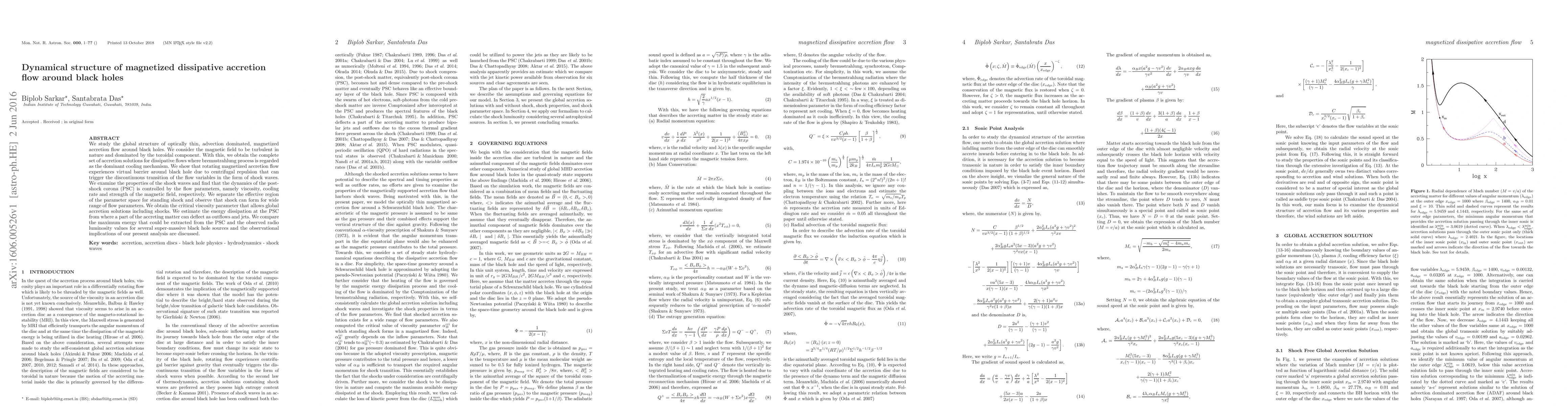 This paper investigates the dynamical structure of magnetized, dissipative accretion flows around black holes, focusing on the formation of shock waves due to centrifugal repulsion. It finds that the post-shock corona's dynamics are influenced by viscosity, cooling rate, and magnetic field strength, and discusses the energy dissipation and potential for outflows and jets.
