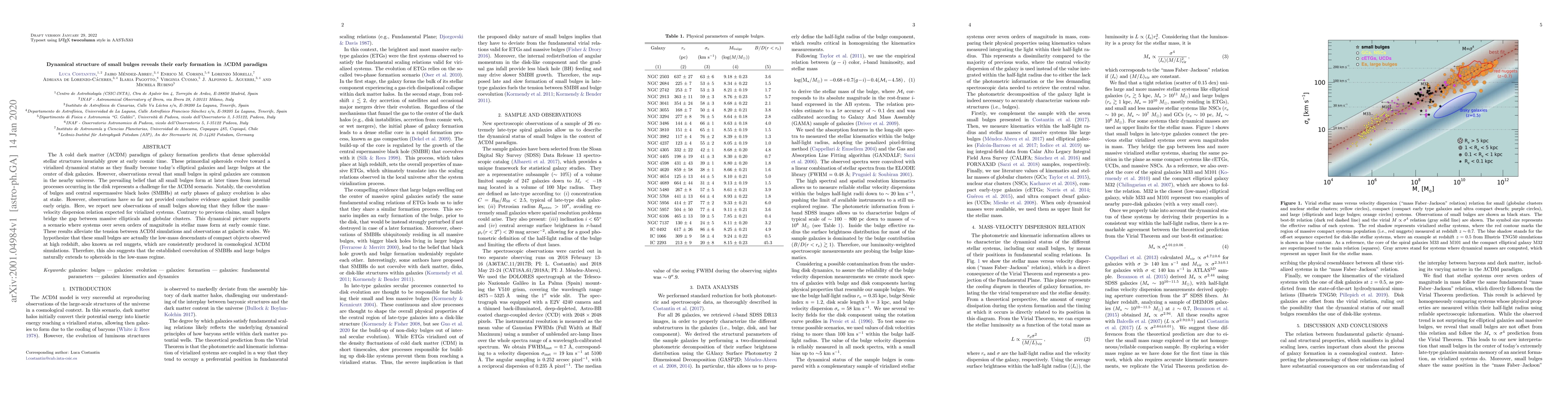This paper reports new observations indicating that small bulges in spiral galaxies follow the mass-velocity dispersion relation expected for virialized systems, suggesting they formed early in the universe. This finding supports the ΛCDM paradigm, bridging the gap between massive ellipticals and globular clusters, and alleviating tensions between simulations and observations at galactic scales.