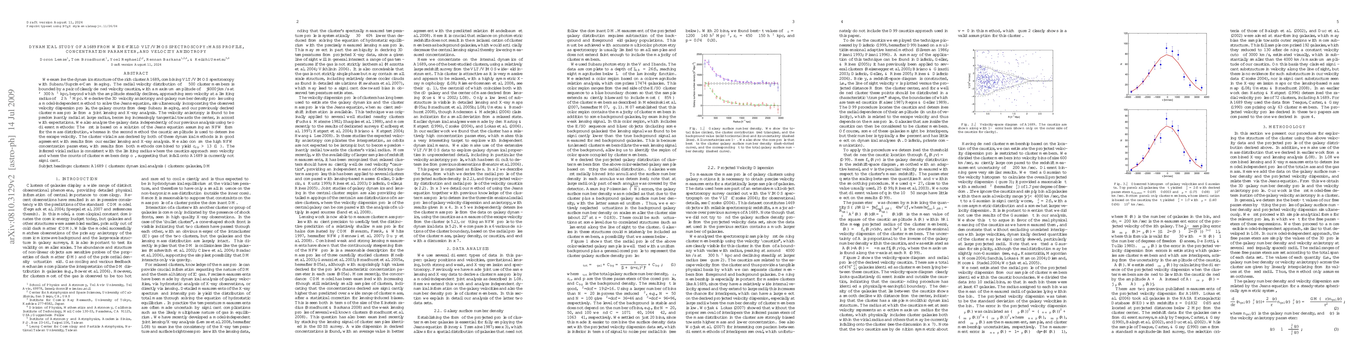 The study employs a model-independent approach to explore the structure of the A1689 cluster using velocity data and the projected galaxy distribution, combined with a previously derived mass profile from X-ray and lensing data. The Jean's equation is used to relate galaxy surface number density and projected velocity dispersion to the 3D galaxy number density and velocity anisotropy profiles.