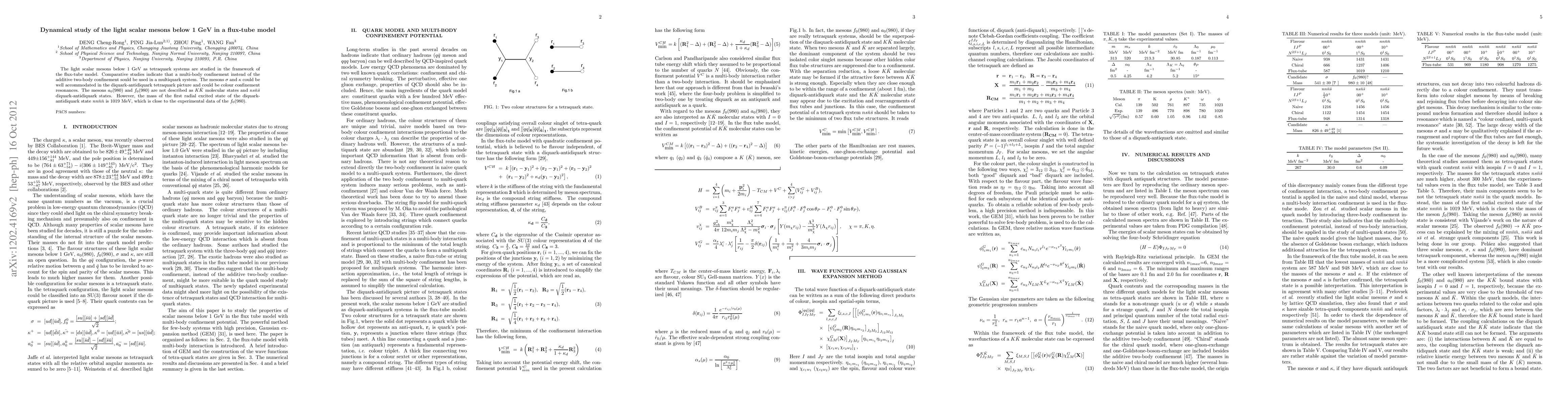 The light scalar mesons below 1 GeV as tetraquark states are studied in the framework of the flux-tube model, the multi-body confinement instead of the additive two-body confinement is used. From the calculated results, we find that the light scalar mesons, $\sigma$, $\kappa$ could be well accommodated in the diquark-antidiquark tetraquark picture in the flux-tube model and they could be color confinement resonances. The mass of the first radial excited state of $[ud][\bar{u}\bar{d}]$ is 1019 MeV, which is close to the mass of $f_0(980)$. Whereas $a_0(980)$ can not be fitted in this interpretation.