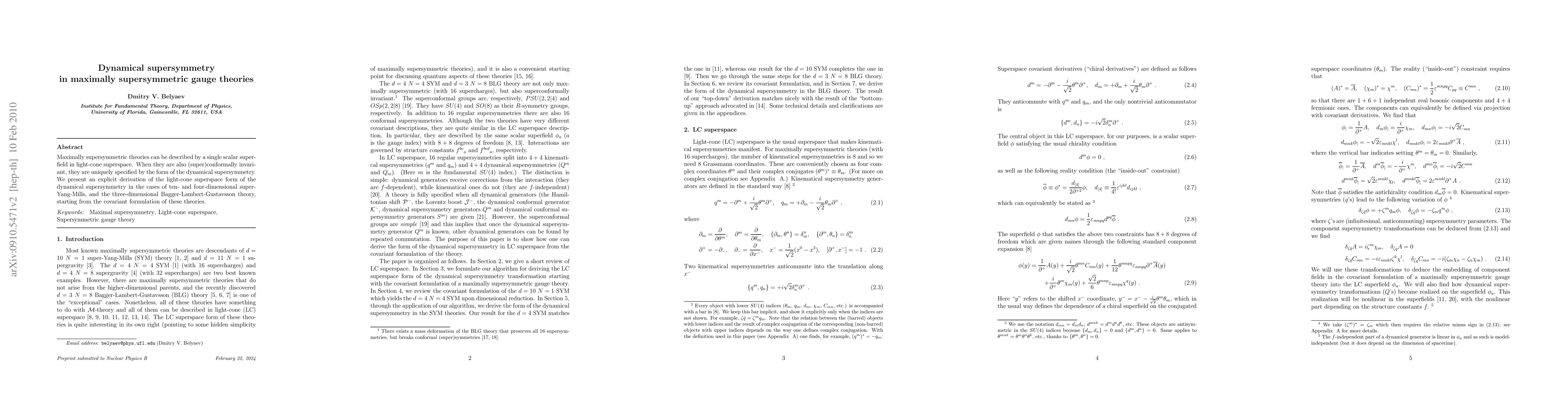 Maximally supersymmetric theories can be described by a single scalar superfield in light-cone superspace. When they are also (super)conformally invariant, they are uniquely specified by the form of the dynamical supersymmetry. We present an explicit derivation of the light-cone superspace form of the dynamical supersymmetry in the cases of ten- and four-dimensional super-Yang-Mills, and the three-dimensional Bagger-Lambert-Gustavsson theory, starting from the covariant formulation of these theories.