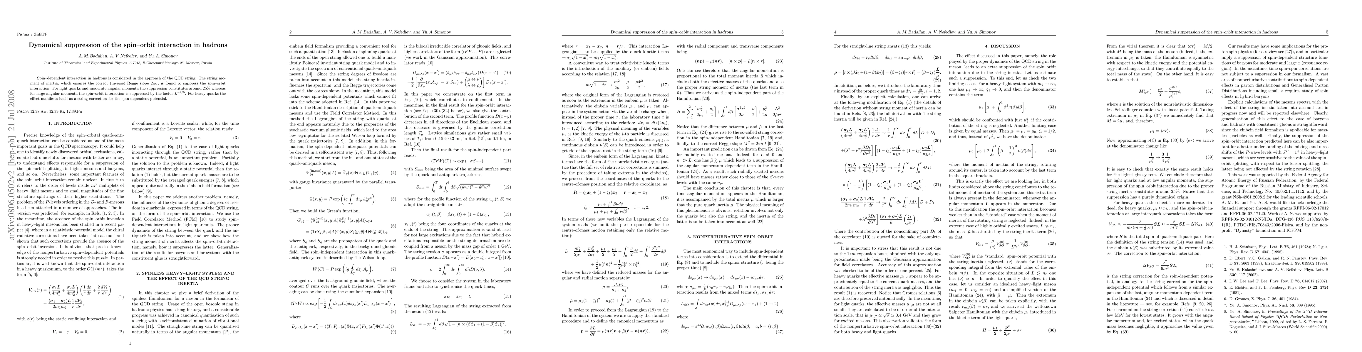 The QCD string approach reveals that spin-dependent interactions in hadrons can be suppressed by up to 25% due to the string moment of inertia, with the suppression increasing for larger angular momenta.