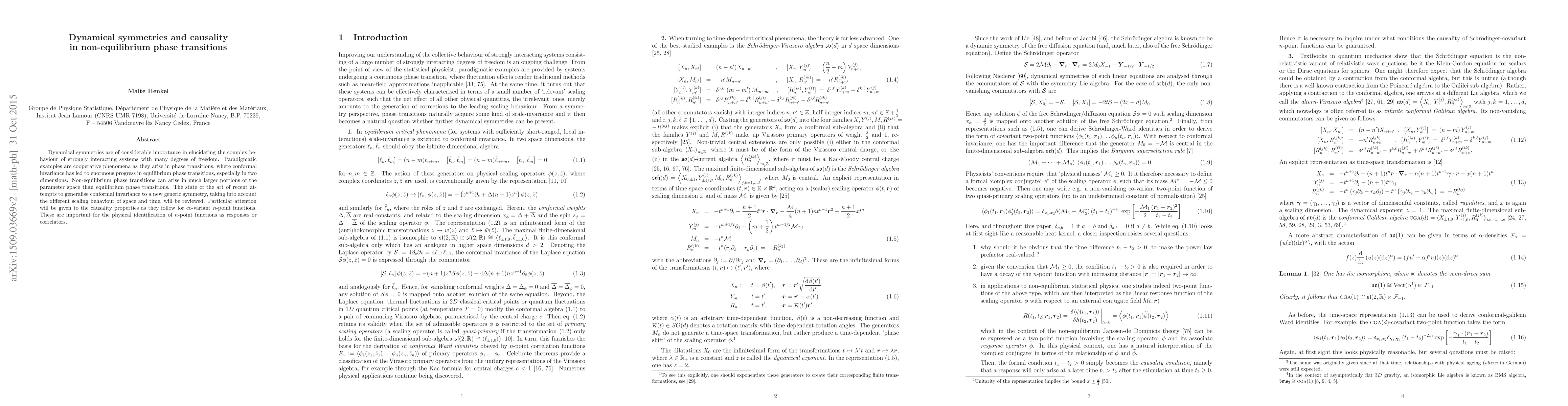 This paper reviews advances in understanding dynamical symmetries relevant to non-equilibrium phase transitions, focusing on generalized conformal invariance and its implications for time-space scaling. Special emphasis is placed on the causality properties derived from covariant n-point functions, crucial for distinguishing responses and correlators.