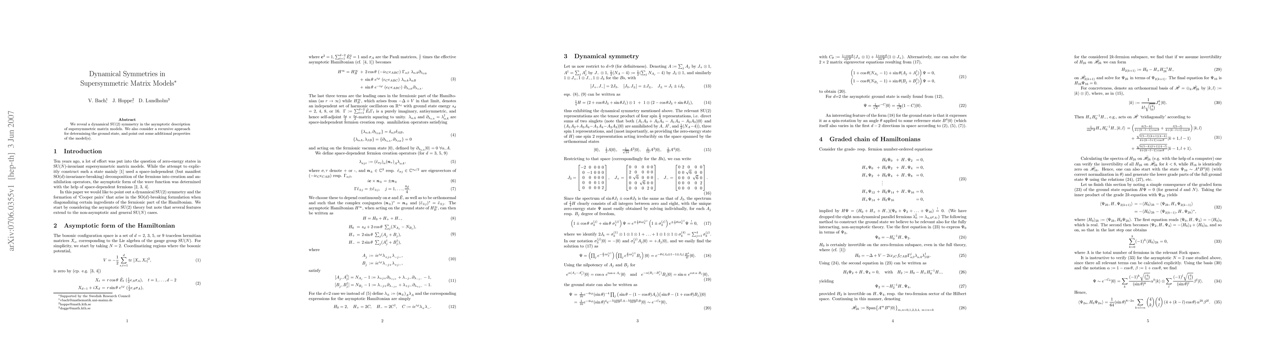 This research uncovers a dynamical SU(2) symmetry in supersymmetric matrix models' asymptotic behavior. It also introduces a recursive method for identifying the ground state and highlights additional model properties.