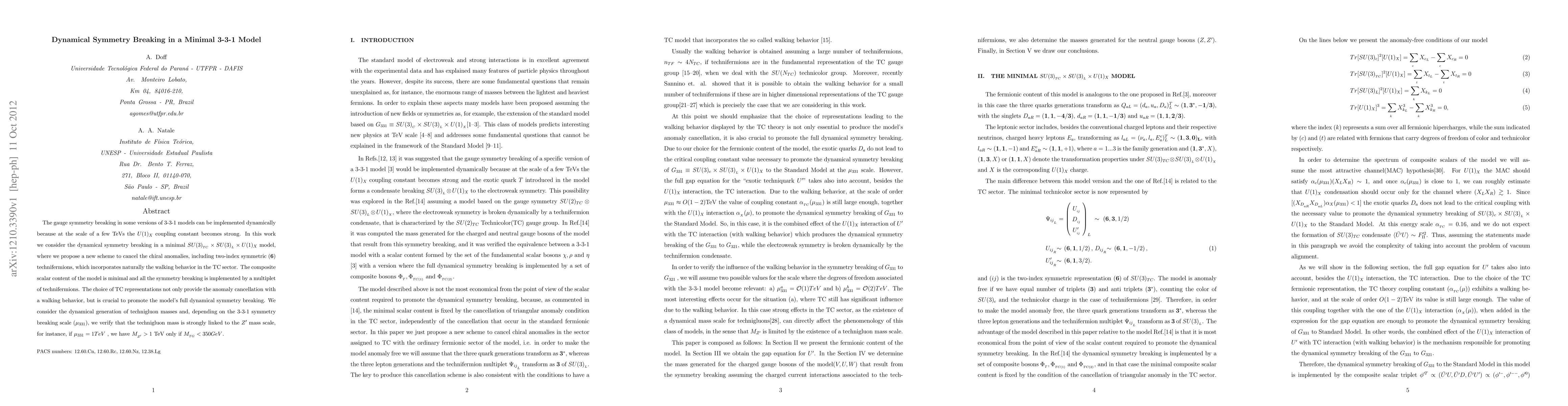 This paper proposes a minimal 3-3-1 model with dynamical symmetry breaking driven by strong $U(1)_X$ coupling at TeV scales. It introduces a new scheme with technifermions to cancel chiral anomalies, ensuring full dynamical symmetry breaking and a minimal composite scalar content. The model's technigluon mass is strongly correlated with the $Z'$ mass, suggesting $M_{Z'} > 1$ TeV if $M_{TG} < 350$ GeV for a specific symmetry breaking scale.
