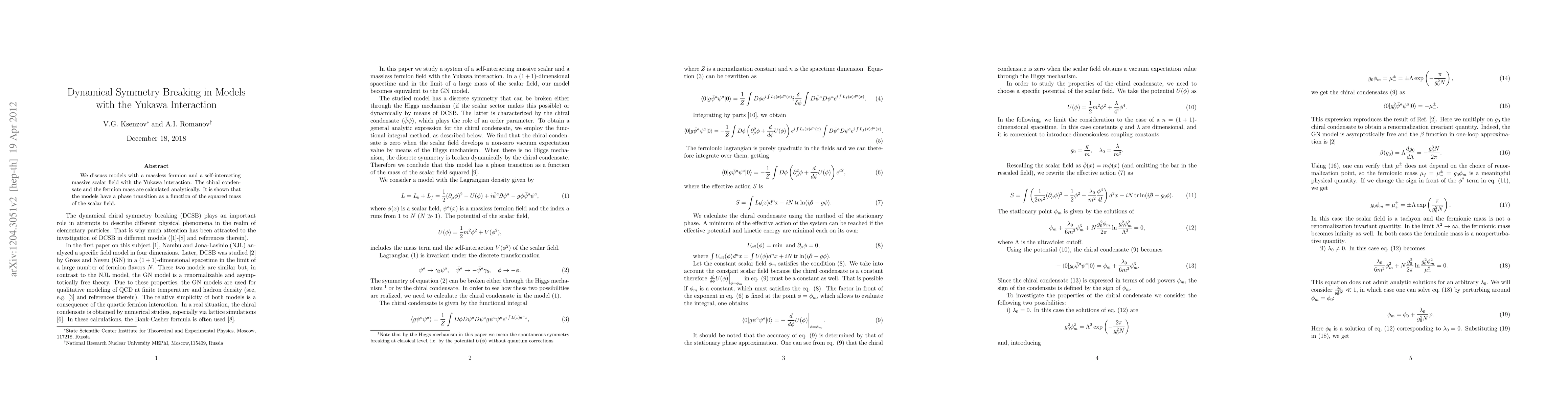 We discuss models with a massless fermion and a self-interacting massive scalar field with the Yukawa interaction. The chiral condensate and the fermion mass are calculated analytically. It is shown that the models have a phase transition as a function of the squared mass of the scalar field.