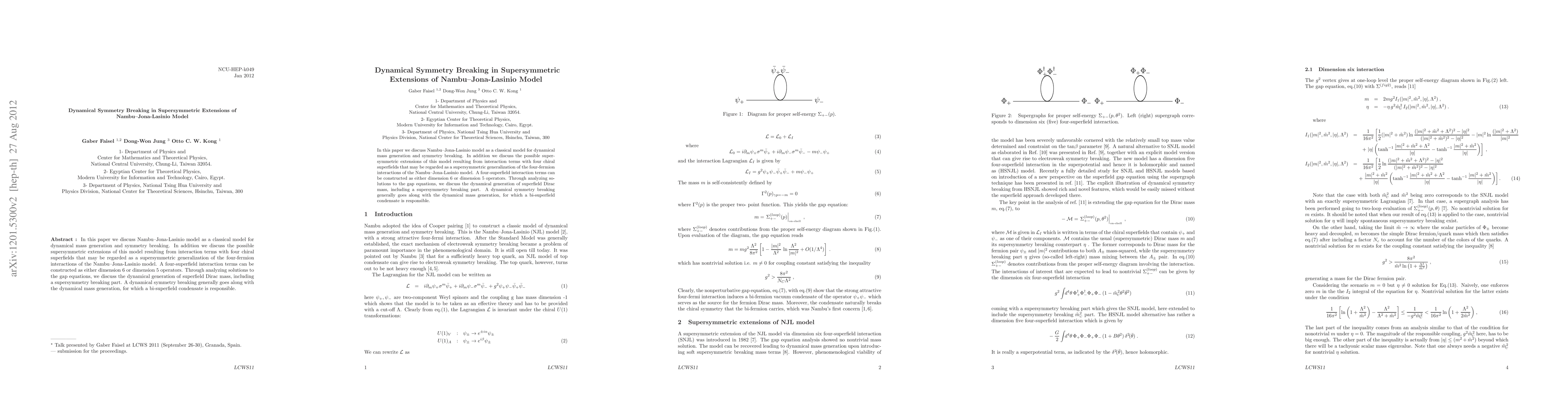 This paper explores the Nambu-Jona-Lasinio model for dynamical mass generation and symmetry breaking, extending it to a supersymmetric framework using four chiral superfields. It investigates the dynamical generation of superfield Dirac mass and symmetry breaking through bi-superfield condensates.