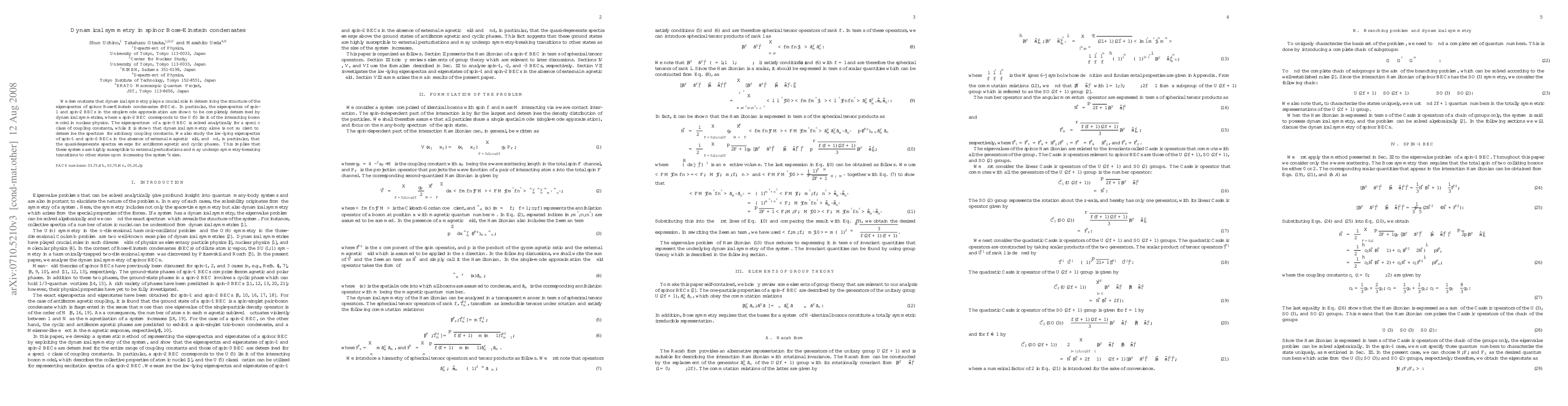 Researchers found that dynamical symmetry determines the structure of spinor Bose-Einstein condensate eigenspectra, with specific symmetries leading to unique spectra for different spin values.