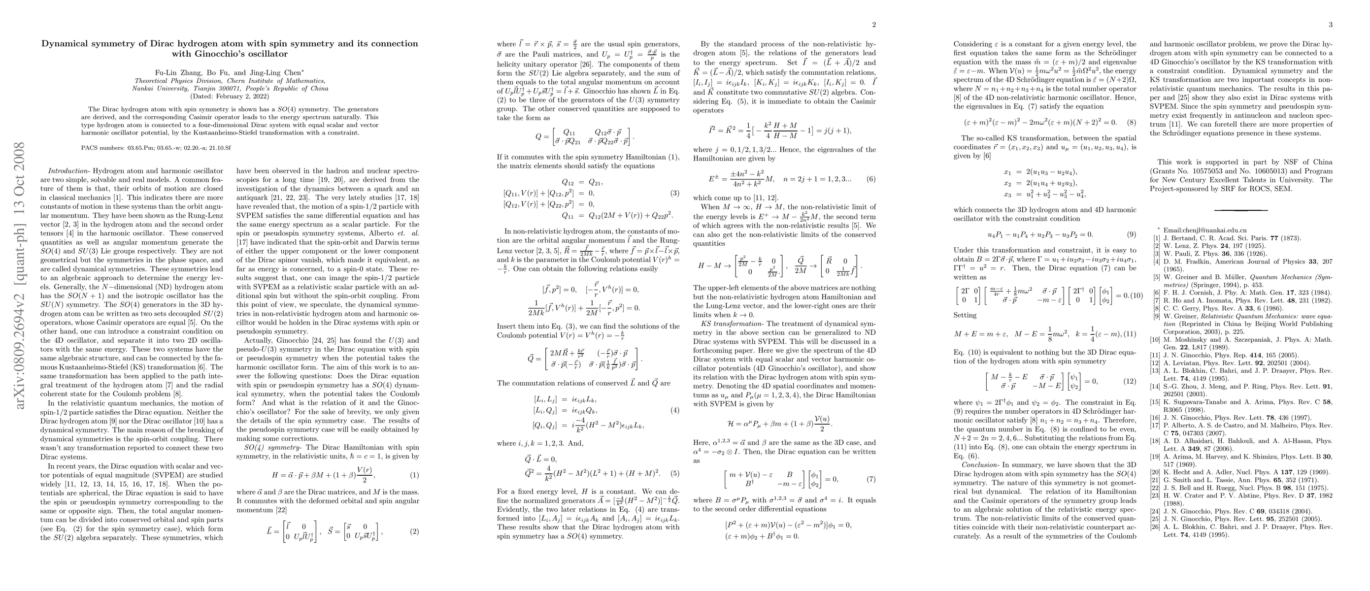 The paper demonstrates that the Dirac hydrogen atom with spin symmetry exhibits an SO(4) dynamical symmetry, deriving its generators and linking it to Ginocchio's oscillator via the Kustaanheimo-Stiefel transformation. This symmetry naturally leads to the energy spectrum of the system.
