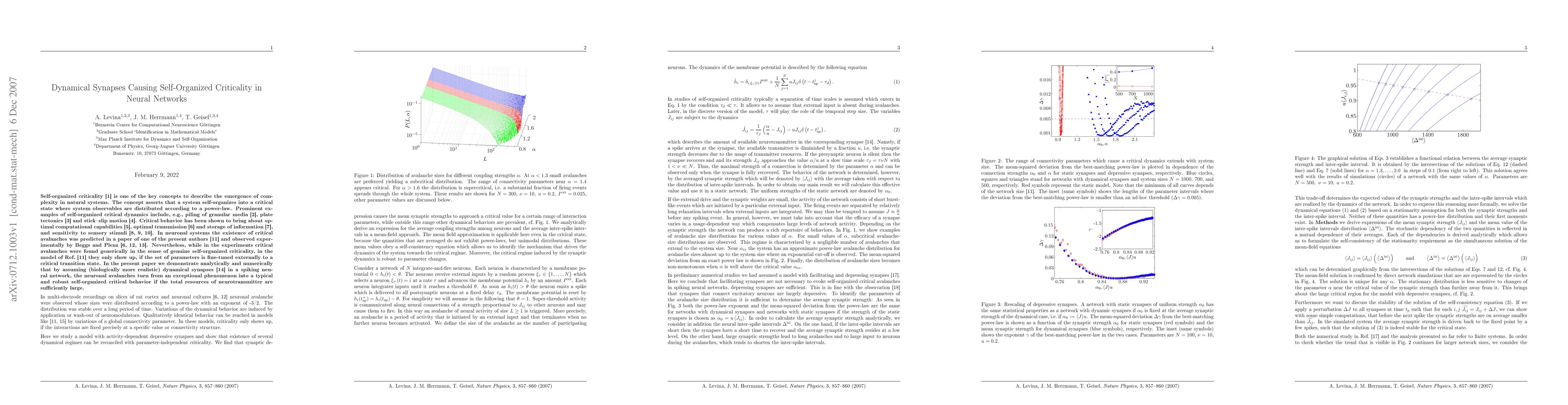 This paper demonstrates that neural networks with dynamically changing synaptic strengths exhibit self-organized criticality, leading to critical avalanche dynamics. Analytical expressions show that such networks naturally reach a critical state for a wide range of parameters, explaining observed power-law distributions in cortical neuron firing activity.
