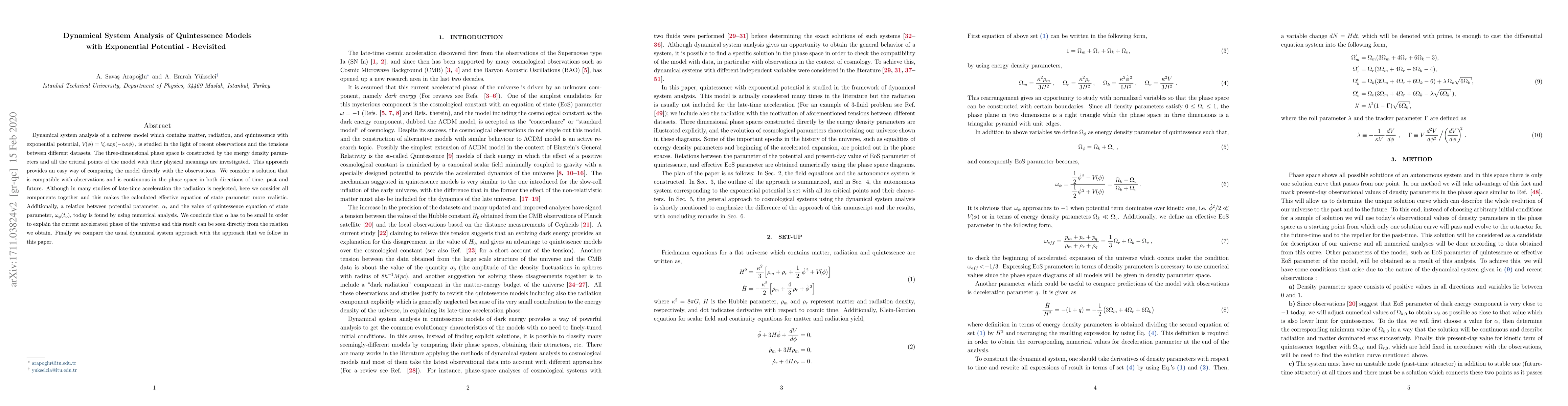 This paper revisits the dynamical system analysis of quintessence models with an exponential potential, incorporating matter, radiation, and quintessence to provide a more realistic effective equation of state. The study finds a small potential parameter $\alpha$ necessary to explain the current accelerated expansion of the universe.