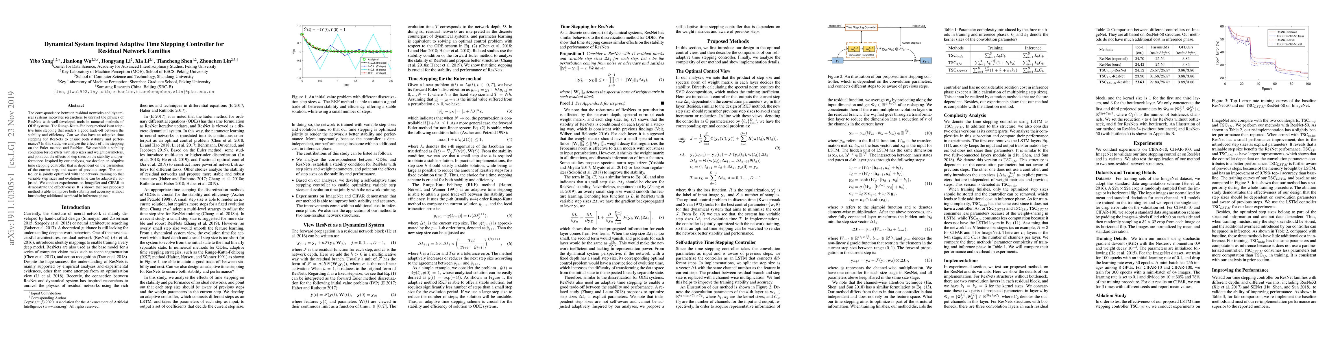 The correspondence between residual networks and dynamical systems motivates researchers to unravel the physics of ResNets with well-developed tools in numeral methods of ODE systems. The Runge-Kutta-Fehlberg method is an adaptive time stepping that renders a good trade-off between the stability and efficiency. Can we also have an adaptive time stepping for ResNets to ensure both stability and performance? In this study, we analyze the effects of time stepping on the Euler method and ResNets. We establish a stability condition for ResNets with step sizes and weight parameters, and point out the effects of step sizes on the stability and performance. Inspired by our analyses, we develop an adaptive time stepping controller that is dependent on the parameters of the current step, and aware of previous steps. The controller is jointly optimized with the network training so that variable step sizes and evolution time can be adaptively adjusted. We conduct experiments on ImageNet and CIFAR to demonstrate the effectiveness. It is shown that our proposed method is able to improve both stability and accuracy without introducing additional overhead in inference phase.