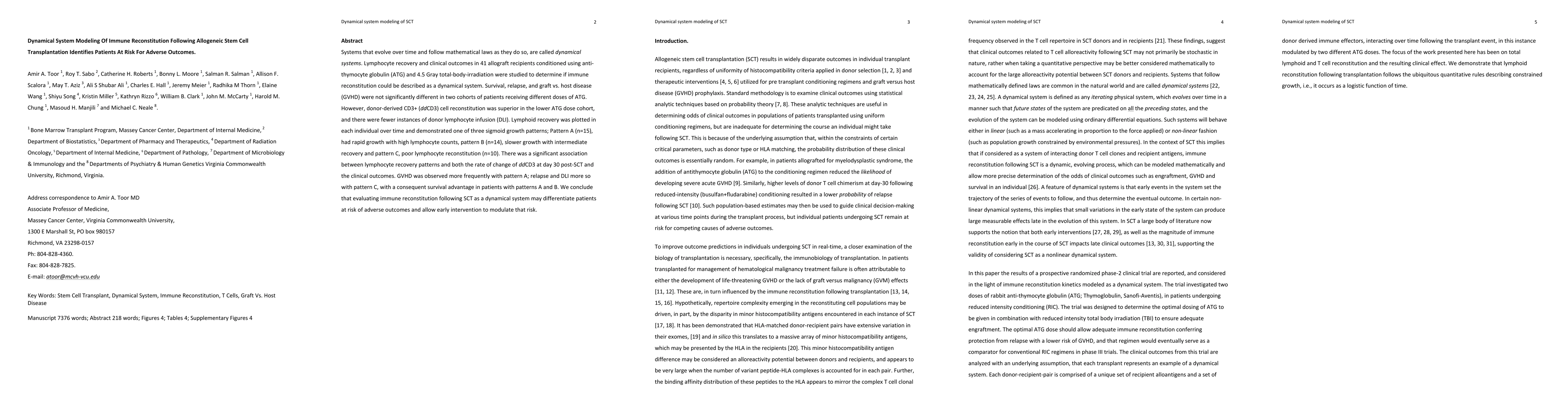 This study models immune reconstitution following allogeneic stem cell transplantation as a dynamical system, identifying three distinct lymphocyte recovery patterns that correlate with different clinical outcomes, including graft vs. host disease and relapse. Early identification of these patterns may enable targeted interventions to improve patient outcomes.