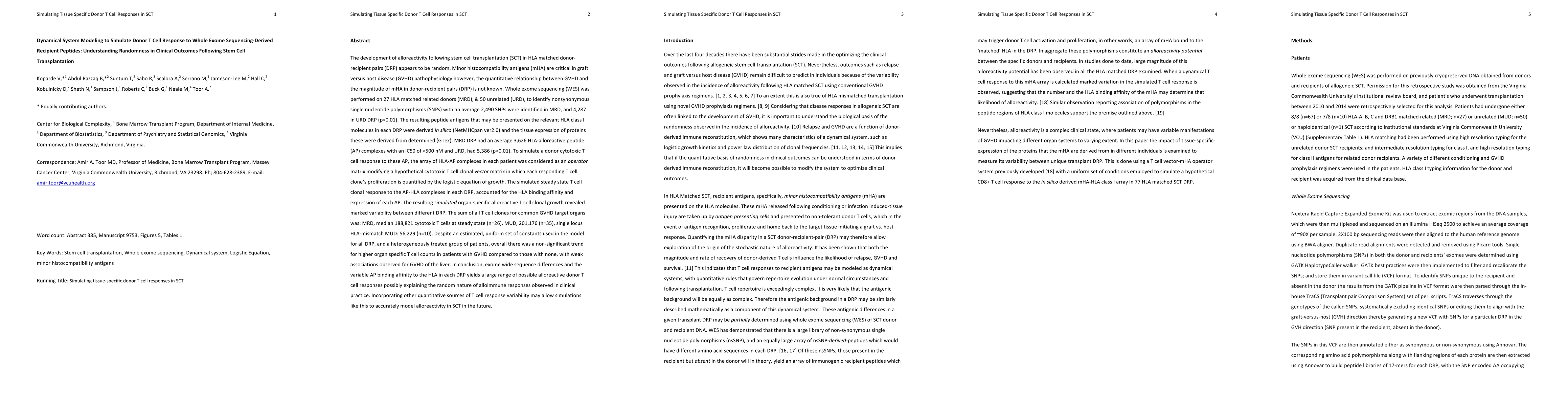 This study models donor T cell responses to recipient peptides derived from whole exome sequencing in stem cell transplantation, using a dynamical system approach. The model reveals significant variability in simulated CD8+ T cell responses, highlighting the unpredictability of alloreactivity in HLA-matched transplants.