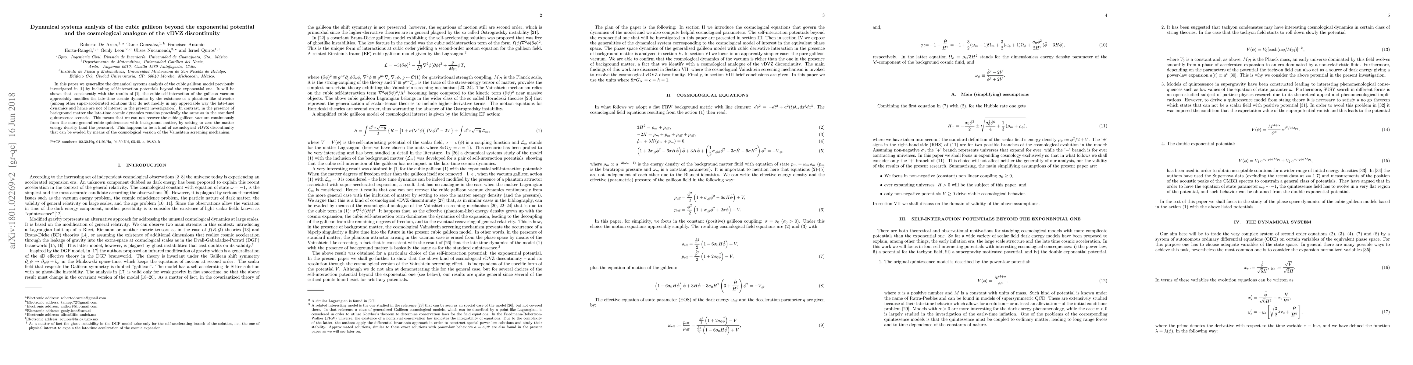 In this paper we generalize the dynamical systems analysis of the cubic galileon model previously investigated in \cite{rtgui} by including self-interaction potentials beyond the exponential one. It will be shown that, consistently with the results of \cite{rtgui}, the cubic self-interaction of the galileon vacuum appreciably modifies the late-time cosmic dynamics by the existence of a phantom-like attractor (among other super-accelerated solutions that are not of interest in the present investigation). In contrast, in the presence of background matter the late-time cosmic dynamics remains practically the same as in the standard quintessence scenario. This means that we can not recover the cubic galileon vacuum continuously from the more general cubic quintessence with background matter, by setting to zero the matter energy density (and the pressure). This happens to be a kind of cosmological vDVZ discontinuity that can be evaded by means of the cosmological version of the Vainshtein screening mechanism.