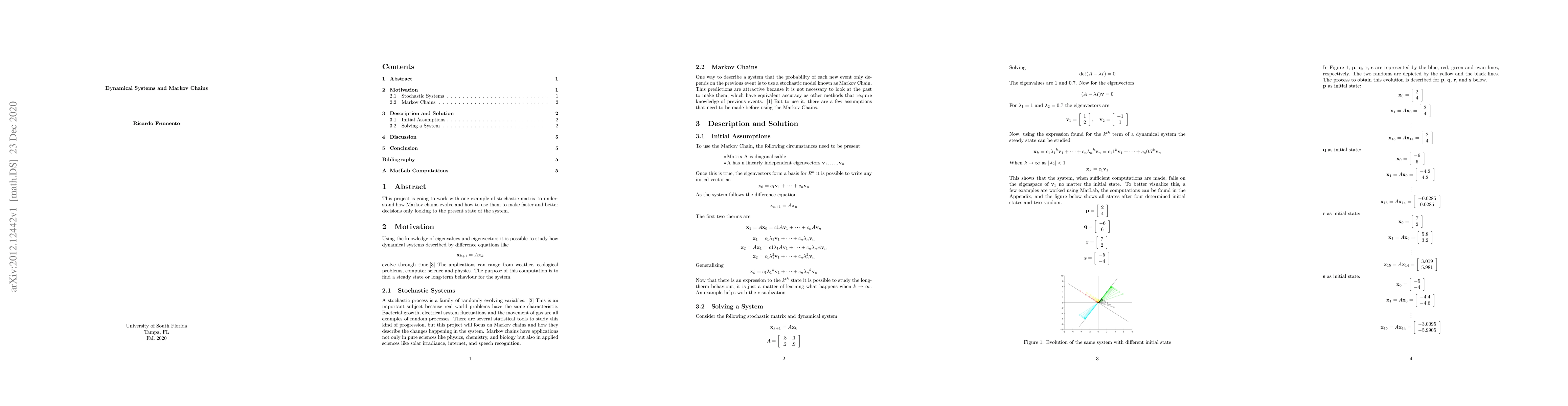 This project is going to work with one example of stochastic matrix to understand how Markov chains evolve and how to use them to make faster and better decisions only looking to the present state of the system.