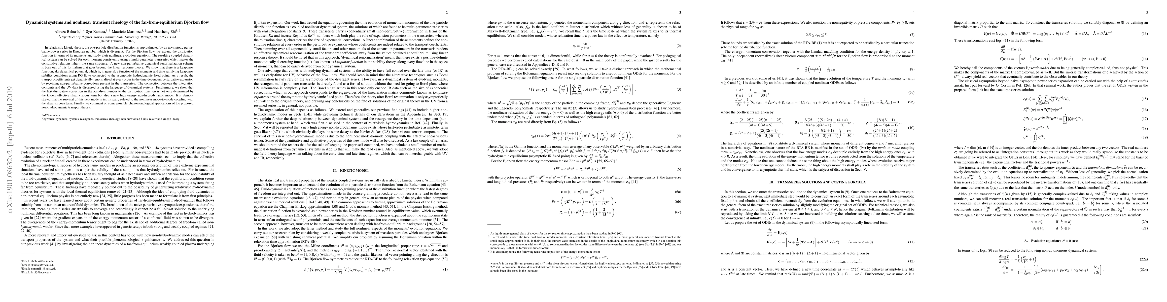 In relativistic kinetic theory, the one-particle distribution function is approximated by an asymptotic perturbative power series in Knudsen number which is divergent. For the Bjorken flow, we expand the distribution function in terms of its moments and study their nonlinear evolution equations. The resulting coupled dynamical system can be solved for each moment consistently using a multi-parameter transseries which makes the constitutive relations inherit the same structure. A new non-perturbative dynamical renormalization scheme is born out of this formalism that goes beyond the linear response theory. We show that there is a Lyapunov function, aka dynamical potential, which is, in general, a function of the moments and time satisfying Lyapunov stability conditions along RG flows connected to the asymptotic hydrodynamic fixed point. As a result, the transport coefficients get dynamically renormalized at every order in the time-dependent perturbative expansion by receiving non-perturbative corrections present in the transseries. The connection between the integration constants and the UV data is discussed using the language of dynamical systems. Furthermore, we show that the first dissipative correction in the Knudsen number to the distribution function is not only determined by the known effective shear viscous term but also a new high energy non-hydrodynamic mode. It is demonstrated that the survival of this new mode is intrinsically related to the nonlinear mode-to-mode coupling with the shear viscous term. Finally, we comment on some possible phenomenological applications of the proposed non-hydrodynamic transport theory.