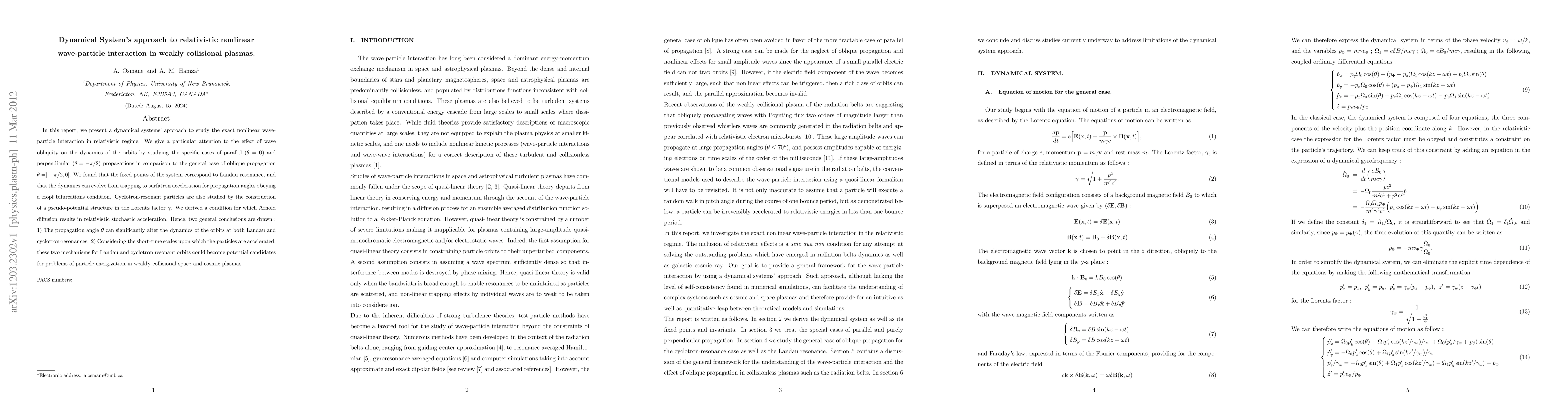 This paper employs dynamical systems theory to analyze relativistic nonlinear wave-particle interactions in weakly collisional plasmas, focusing on the impact of wave obliquity on orbit dynamics. It concludes that the propagation angle significantly influences both Landau and cyclotron resonances, suggesting these mechanisms as potential accelerators in space and cosmic plasmas.