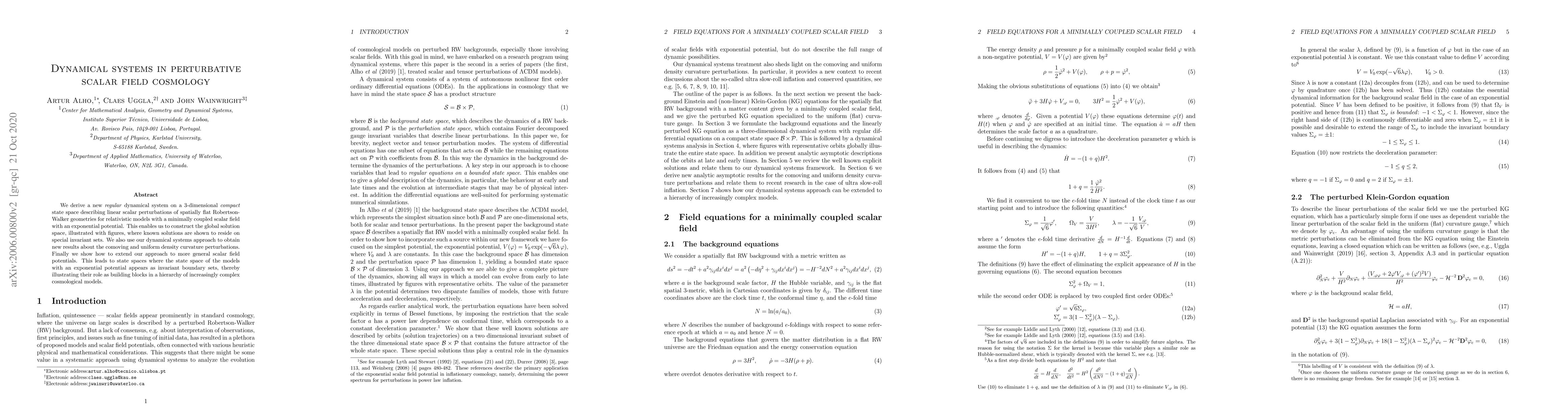 We derive a new \emph{regular} dynamical system on a 3-dimensional \emph{compact} state space describing linear scalar perturbations of spatially flat Robertson-Walker geometries for relativistic models with a minimally coupled scalar field with an exponential potential. This enables us to construct the global solution space, illustrated with figures, where known solutions are shown to reside on special invariant sets. We also use our dynamical systems approach to obtain new results about the comoving and uniform density curvature perturbations. Finally we show how to extend our approach to more general scalar field potentials. This leads to state spaces where the state space of the models with an exponential potential appears as invariant boundary sets, thereby illustrating their role as building blocks in a hierarchy of increasingly complex cosmological models.