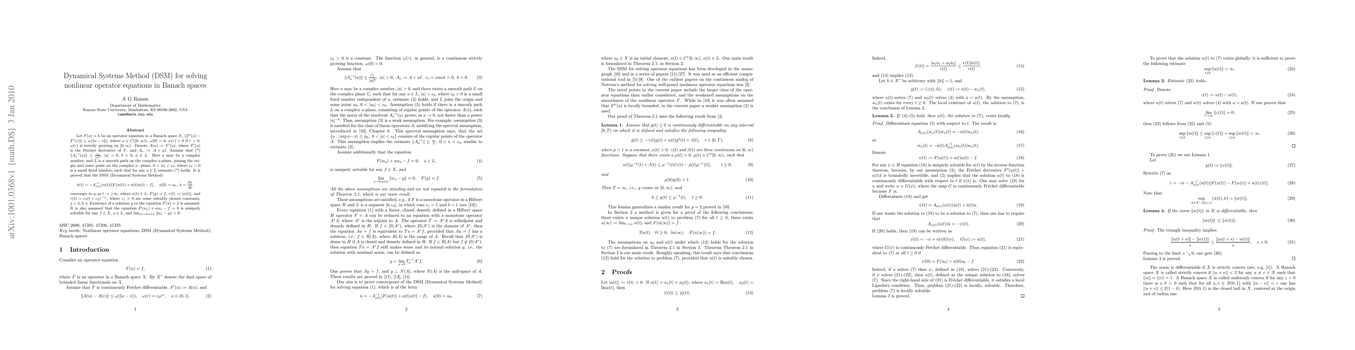 A new method called Dynamical Systems Method (DSM) is proposed for solving nonlinear operator equations in Banach spaces, using a unique combination of dynamical systems theory and Fréchet derivatives.