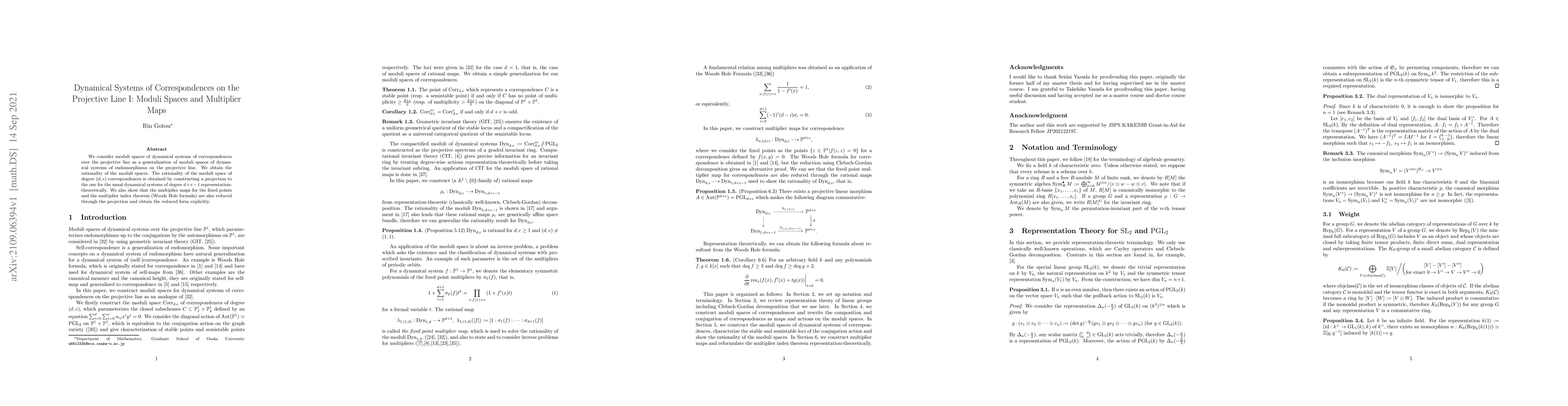 This paper studies moduli spaces of dynamical systems of correspondences on the projective line, generalizing the moduli spaces of dynamical systems of endomorphisms. The authors demonstrate the rationality of these moduli spaces and derive a representation-theoretic projection to reduce the multiplier maps and index theorem, obtaining explicit reduced forms.