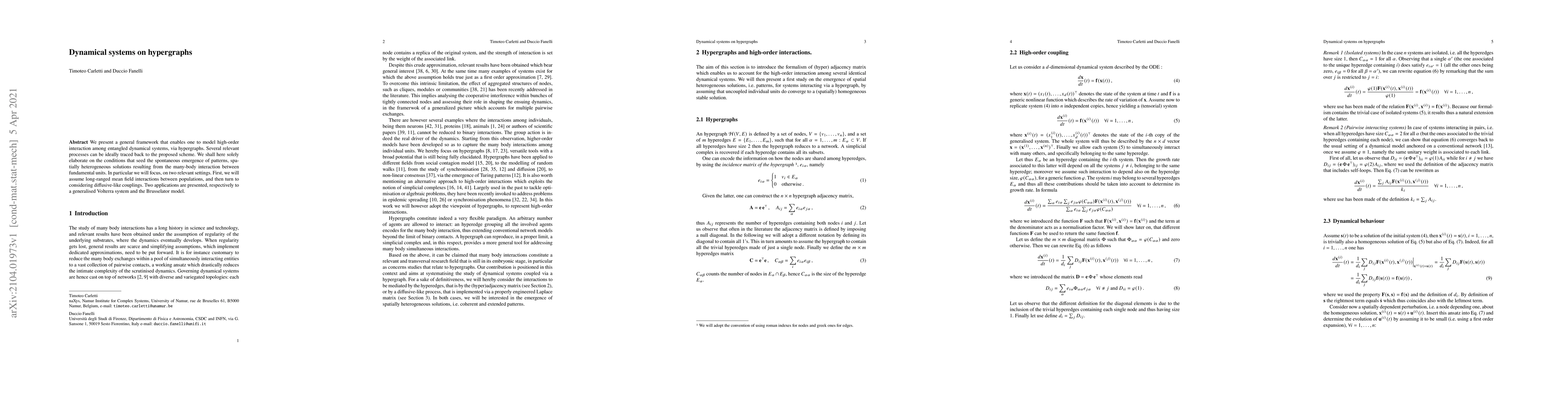 This paper introduces a framework for modeling high-order interactions among entangled dynamical systems using hypergraphs. It focuses on conditions that lead to the spontaneous emergence of spatially heterogeneous patterns due to many-body interactions, applying the model to long-ranged mean field interactions and diffusive-like couplings, and demonstrating its utility through examples in the Volterra system and the Brusselator model.