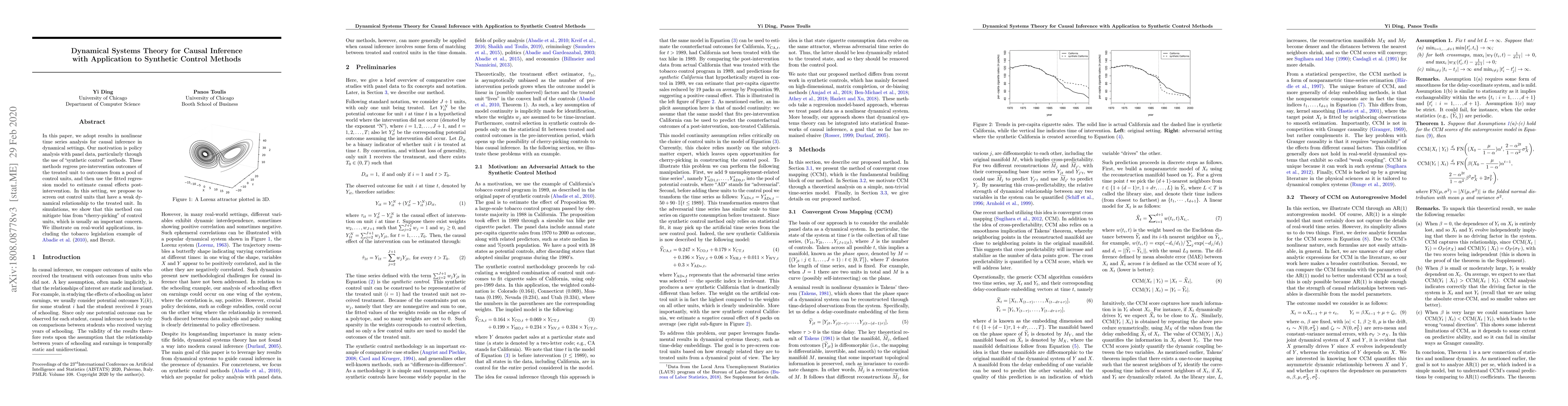 In this paper, we adopt results in nonlinear time series analysis for causal inference in dynamical settings.~Our motivation is policy analysis with panel data, particularly through the use of "synthetic control" methods. These methods regress pre-intervention outcomes of the treated unit to outcomes from a pool of control units, and then use the fitted regression model to estimate causal effects post-intervention. In this setting, we propose to screen out control units that have a weak dynamical relationship to the treated unit. In simulations, we show that this method can mitigate bias from "cherry-picking" of control units, which is usually an important concern. We illustrate on real-world applications, including the tobacco legislation example of \citet{Abadie2010}, and Brexit.