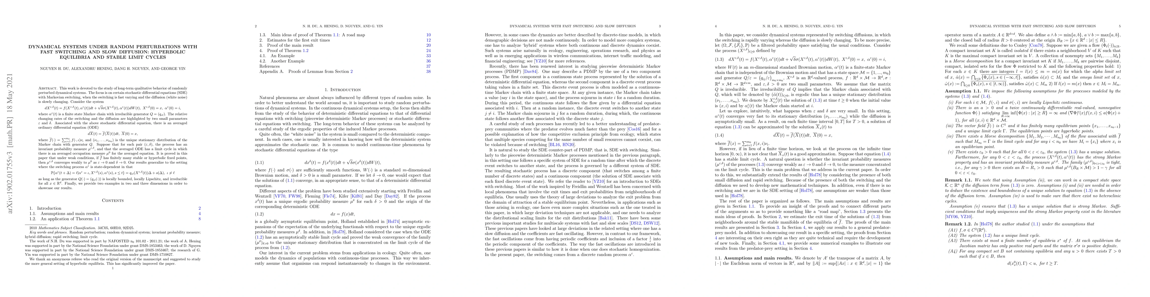 A research paper studies the long-term behavior of randomly perturbed dynamical systems with fast switching and slow diffusion, showing that under certain conditions, these systems converge to stable limit cycles and occupation measures.