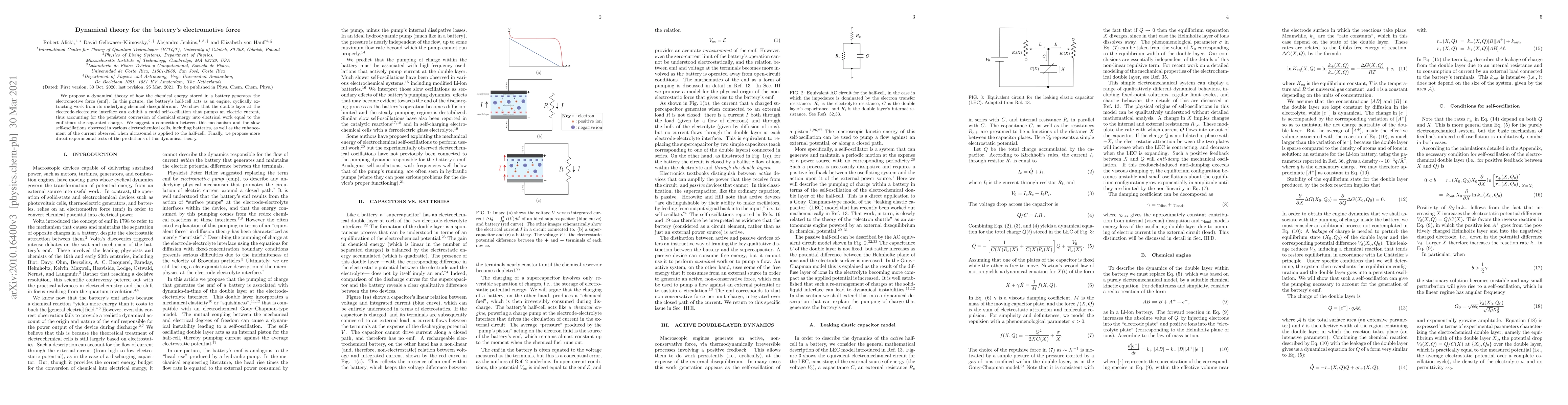 A new dynamical theory explains how batteries generate electromotive force through a self-oscillating mechanism at the electrode-electrolyte interface, connecting to observations of ultrasound-enhanced currents and slow self-oscillations in electrochemical cells.