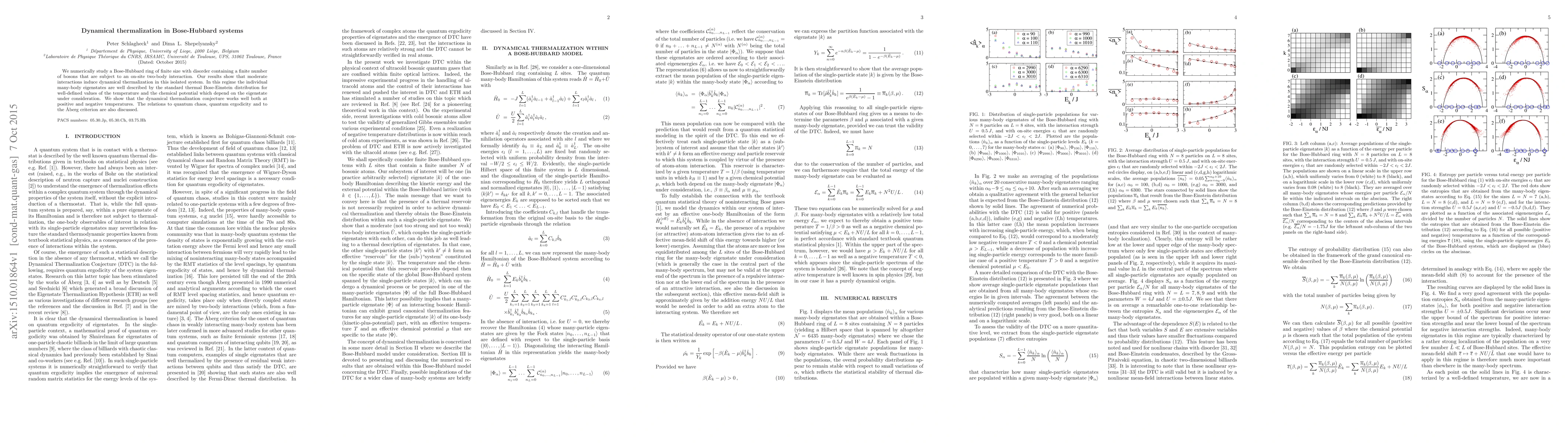 This paper numerically investigates a disordered Bose-Hubbard ring, demonstrating that moderate interactions lead to dynamical thermalization, where many-body eigenstates align with thermal Bose-Einstein statistics. The study also explores connections to quantum chaos, quantum ergodicity, and the Aberg criterion.