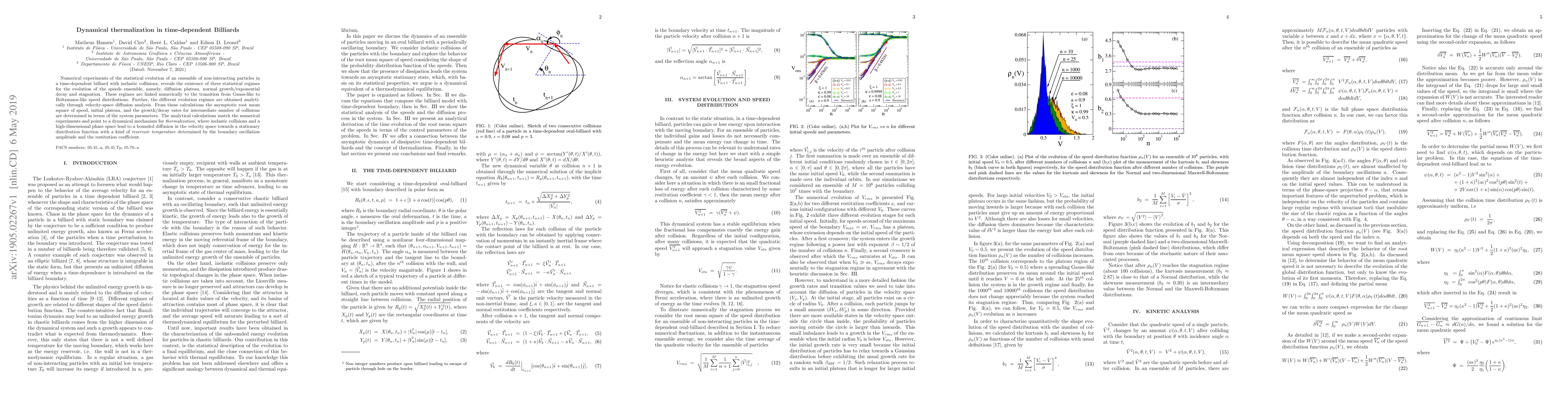 Numerical experiments of the statistical evolution of an ensemble of non-interacting particles in a time-dependent billiard with inelastic collisions, reveals the existence of three statistical regimes for the evolution of the speeds ensemble, namely, diffusion plateau, normal growth/exponential decay and stagnation. These regimes are linked numerically to the transition from Gauss-like to Boltzmann-like speed distributions. Further, the different evolution regimes are obtained analytically through velocity-space diffusion analysis. From these calculations the asymptotic root mean square of speed, initial plateau, and the growth/decay rates for intermediate number of collisions are determined in terms of the system parameters. The analytical calculations match the numerical experiments and point to a dynamical mechanism for thermalization, where inelastic collisions and a high-dimensional phase space lead to a bounded diffusion in the velocity space towards a stationary distribution function with a kind of reservoir temperature determined by the boundary oscillation amplitude and the restitution coefficient.