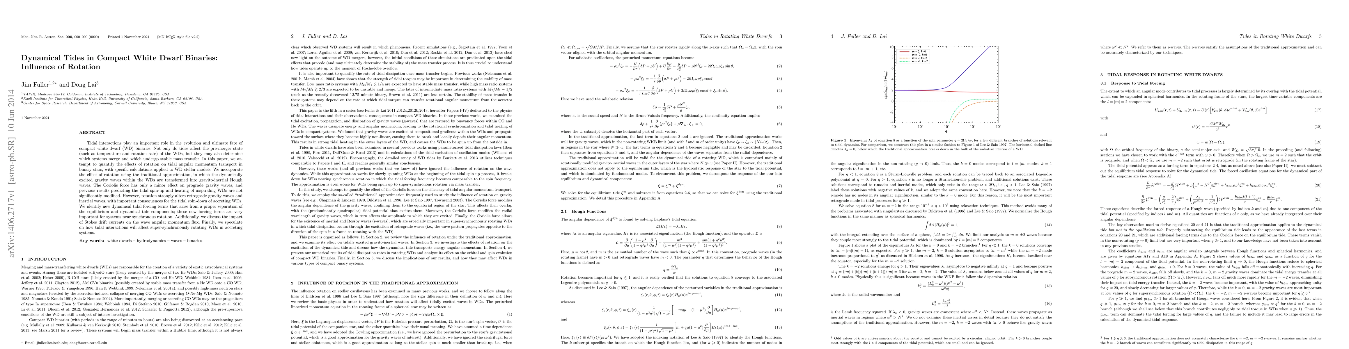 Tidal interactions play an important role in the evolution and ultimate fate of compact white dwarf (WD) binaries. Not only do tides affect the pre-merger state (such as temperature and rotation rate) of the WDs, but they may also determine which systems merge and which undergo stable mass transfer. In this paper, we attempt to quantify the effects of rotation on tidal angular momentum transport in binary stars, with specific calculations applied to WD stellar models. We incorporate the effect of rotation using the traditional approximation, in which the dynamically excited gravity waves within the WDs are transformed into gravito-inertial Hough waves. The Coriolis force has only a minor effect on prograde gravity waves, and previous results predicting the tidal spin-up and heating of inspiraling WDs are not significantly modified. However, rotation strongly alters retrograde gravity waves and inertial waves, with important consequences for the tidal spin-down of accreting WDs. We identify new dynamical tidal forcing terms that arise from a proper separation of the equilibrium and dynamical tide components; these new forcing terms are very important for systems near synchronous rotation. Additionally, we discuss the impact of Stokes drift currents on the wave angular momentum flux. Finally, we speculate on how tidal interactions will affect super-synchronously rotating WDs in accreting systems.
