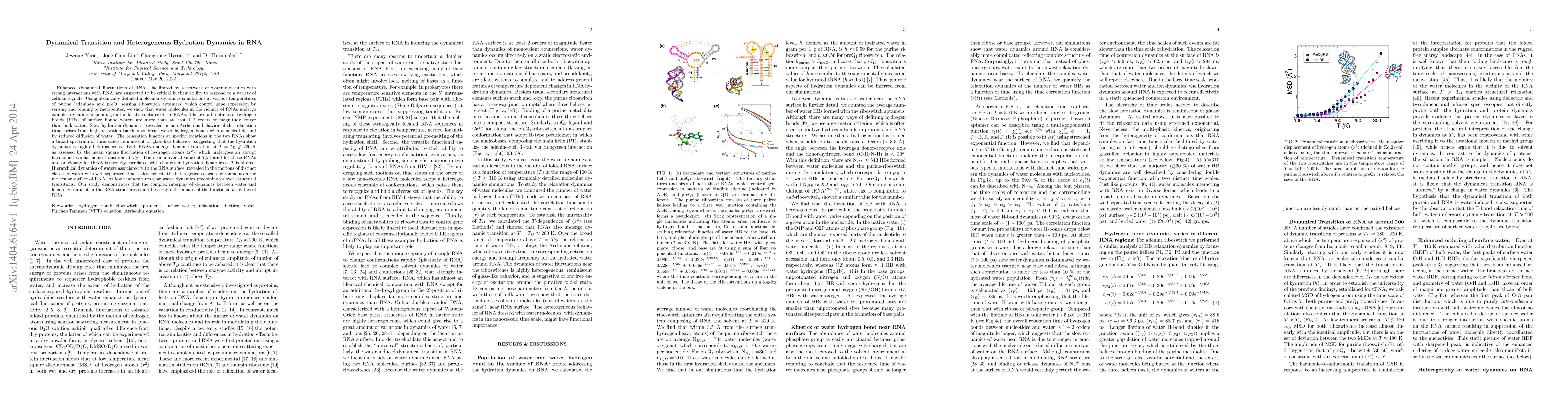 This paper investigates the dynamical transition and heterogeneous hydration dynamics of RNA using molecular dynamics simulations. It finds that water molecules near RNA exhibit complex, heterogeneous dynamics, with hydrogen bond lifetimes orders of magnitude longer than in bulk water, leading to slow relaxation kinetics and glass-like behavior. The study reveals a universal dynamic transition temperature correlated with changes in hydration dynamics, suggesting that the intricate interplay between RNA dynamics and its hydration environment is crucial for RNA functionality.