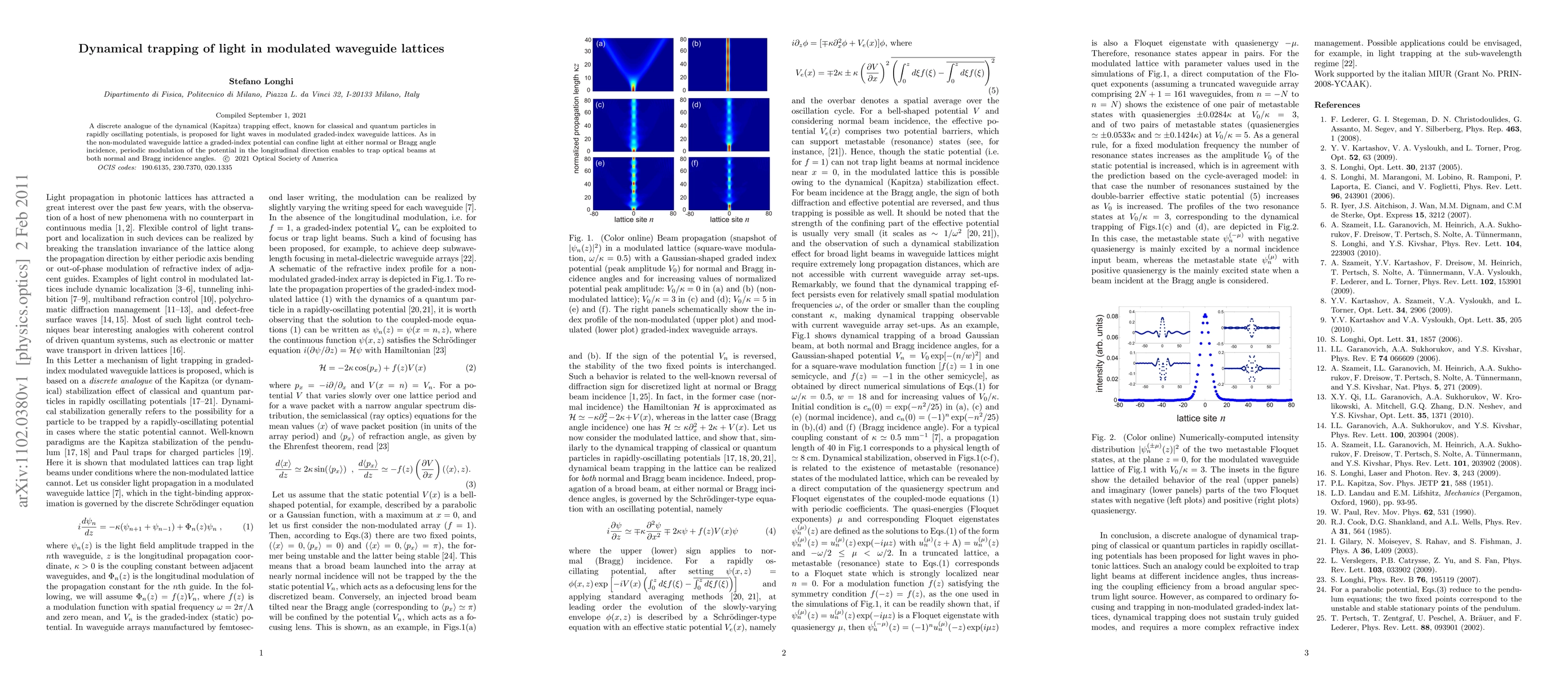 This paper proposes a dynamical trapping effect for light waves in modulated waveguide lattices, analogous to the Kapitza effect seen in particles, allowing optical beams to be trapped at both normal and Bragg incidence angles through periodic modulation of the waveguide potential.