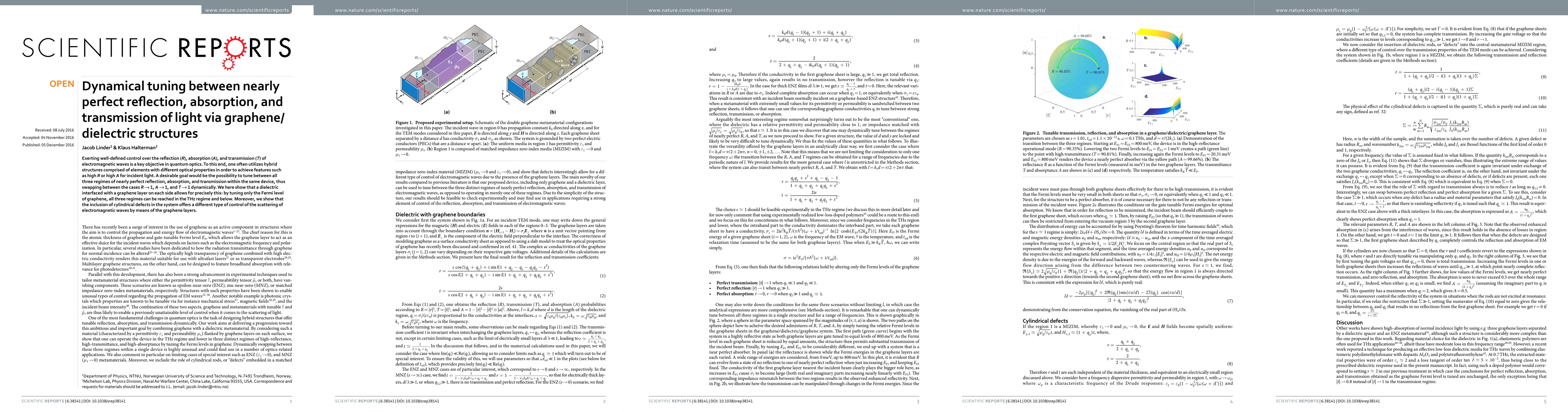 This research demonstrates a hybrid graphene/dielectric structure that dynamically tunes between nearly perfect reflection, absorption, and transmission of light in the THz regime by adjusting the Fermi level of graphene. Additionally, cylindrical defects in the system provide alternative control over electromagnetic wave scattering.