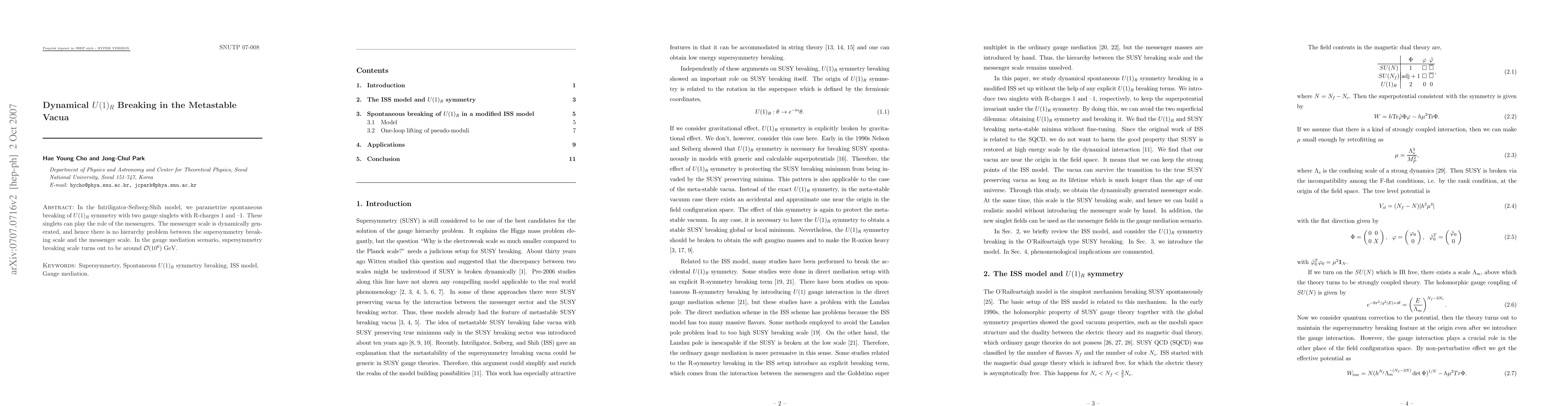 In the Intriligator-Seiberg-Shih model, we parametrize spontaneous breaking of $U(1)_R$ symmetry with two gauge singlets with R-charges 1 and --1. These singlets can play the role of the messengers. The messenger scale is dynamically generated, and hence there is no hierarchy problem between the supersymmetry breaking scale and the messenger scale. In the gauge mediation scenario, supersymmetry breaking scale turns out to be around $\mathcal{O}(10^6)\textrm{GeV}$.