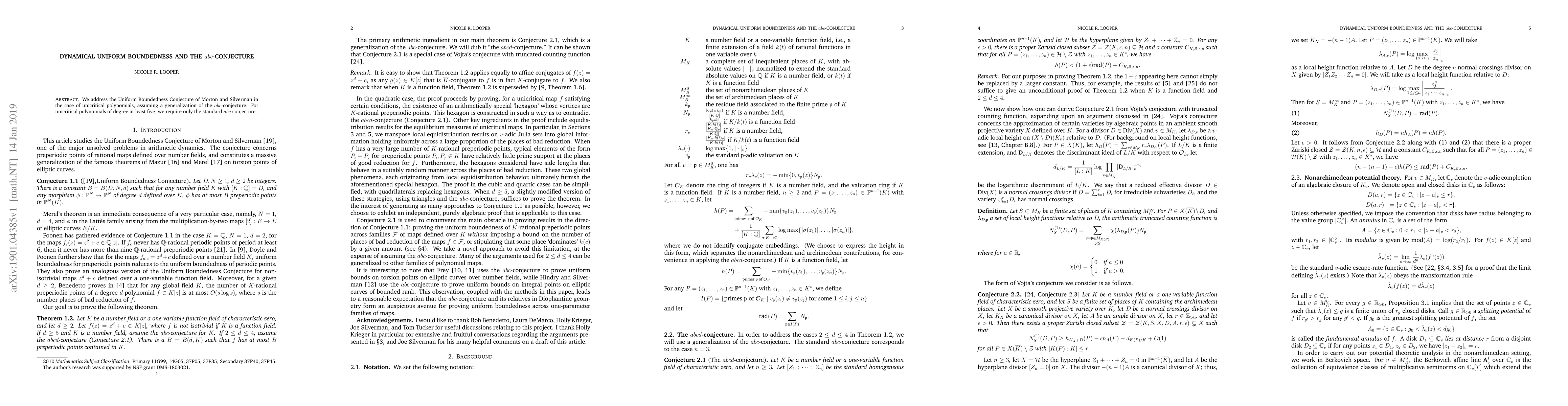 This paper investigates the Uniform Boundedness Conjecture for unicritical polynomials, relying on a generalized $abc$-conjecture for broader cases and the standard $abc$-conjecture for polynomials of degree five or higher. The study provides insights into dynamical uniform boundedness under these assumptions.