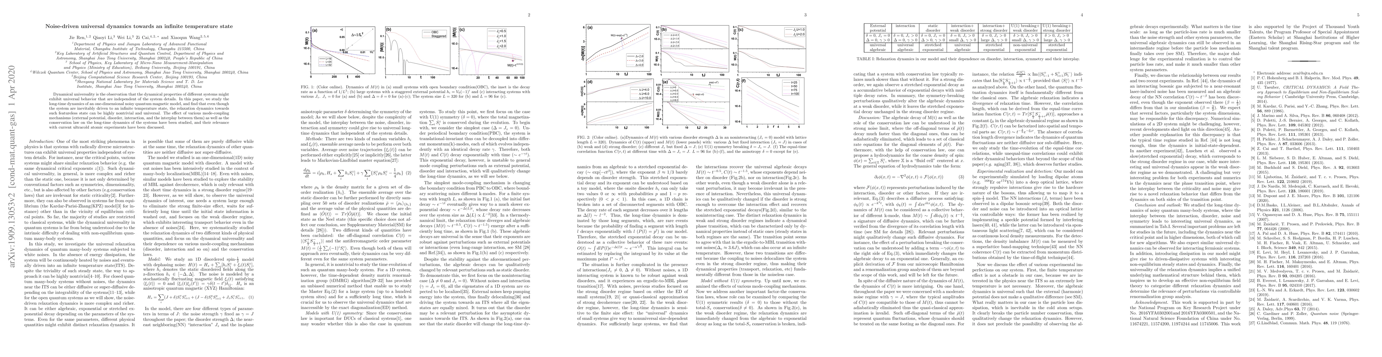 Dynamical universality is the observation that the dynamical properties of different systems might exhibit universal behavior that are independent of the system details. In this paper, we study the long-time dynamics of an one-dimensional noisy quantum magnetic model, and find that even though the system are inevitably driven to an infinite temperature state, the relaxation dynamics towards such featureless state can be highly nontrivial and universal. The effect of various mode-coupling mechanisms (external potential, disorder, interaction, and the interplay between them) as well as the conservation law on the long-time dynamics of the systems have been studied, and their relevance with current ultracold atomic experiments have been discussed.