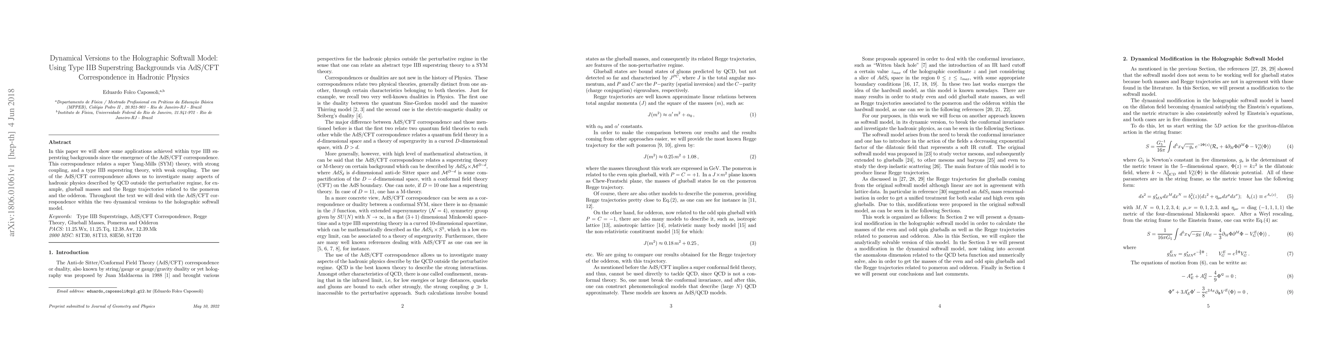 In this paper we will show some applications achieved within type IIB superstring backgrounds since the emergence of the AdS/CFT correspondence. This correspondence relates a super Yang-Mills (SYM) theory, with strong coupling, and a type IIB superstring theory, with weak coupling. The use of the AdS/CFT correspondence allows us to investigate many aspects of hadronic physics described by QCD outside the perturbative regime, for example, glueball masses and the Regge trajectories related to the pomeron and the odderon. Throughout the text we will deal with the AdS/CFT correspondence within the two dynamical versions to the holographic softwall model.